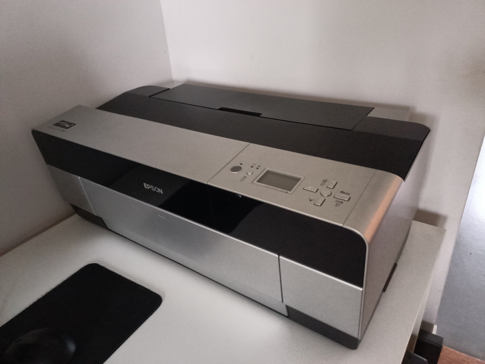 stosowane tylko oryginalne tusze. Co tydzień, góra dwa tygodnie drukowany kolorowy obrazek żeby nie zaschło. W komplecie oryginalne pudełko, specjalnie uszyty pokrowiec z płótna przeciw kurzowi oraz kilka pudełek różnych napoczętych papierów do drukarek atramentowych marki Fomei.