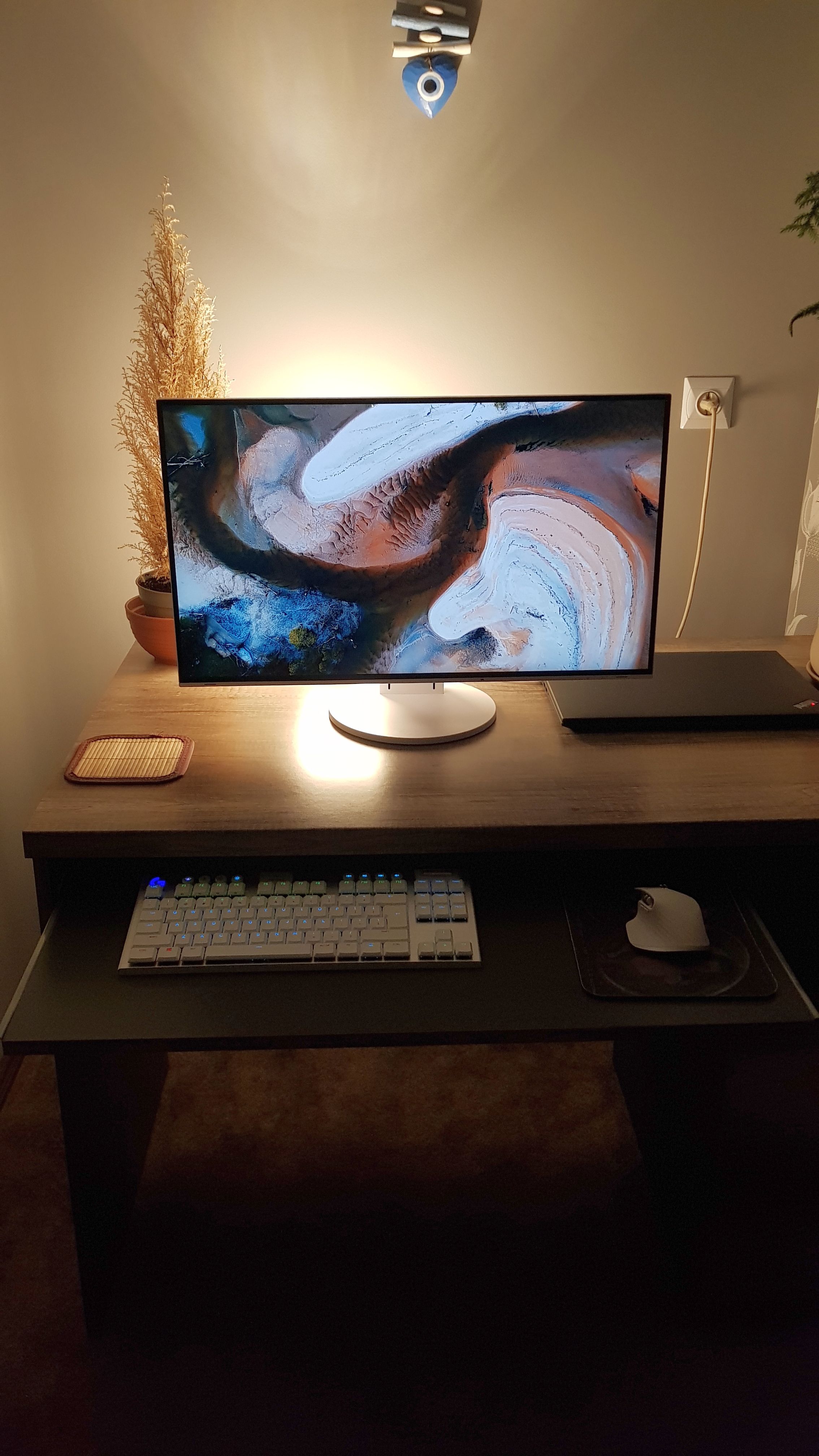 Od dłuższego czasu szukam dla siebie idealnj mało męczącej konfiguracji stanowiska pracy szczególnie w godzinach wieczornych. Poczytałem sporo na forum odnośnie odpowiedniego oświetlenia, kontrastu itp. Od lat jestem użytkownikiem typowo laptopowym, raczej nie korzystam z monitorów zewnętrznych. Jakiś czas temu jednak skusiłem się na polecanego Nec'a EA271U, użytkowałem go jakiś czas jednak ostatecznie nie mogłem się przyzwyczaić i go oddałem. Po około roku czasu ponownie postanowiłem spróbować, tym razem dla odmiany zakupiłem Eizo EV2785.