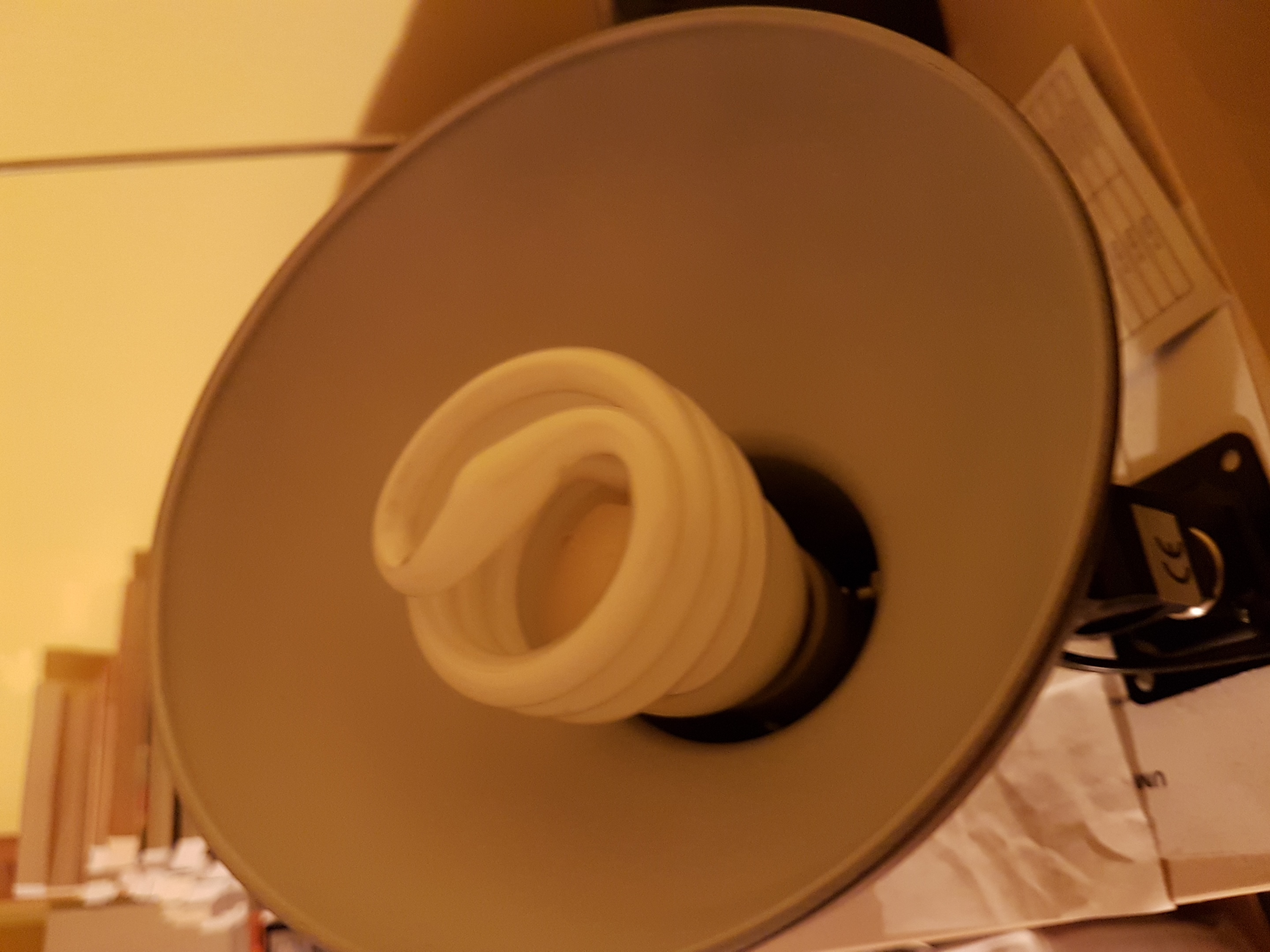 Spostrzeżenie - lampka typu gówienko nie stoi stabilnie tak jak na blacie biurka, prawie mi wpadła za komodę, musiałem trochę klosz unieść do góry. Lampka ta nie może być podsunięta pod TV toteż nie wystaje z przodu ale jak mierzyłem z tyłu, to wystaje bardziej (świetlówka z niej) niż oprawka foto, która ma w całości zakrytą świetlówkę.