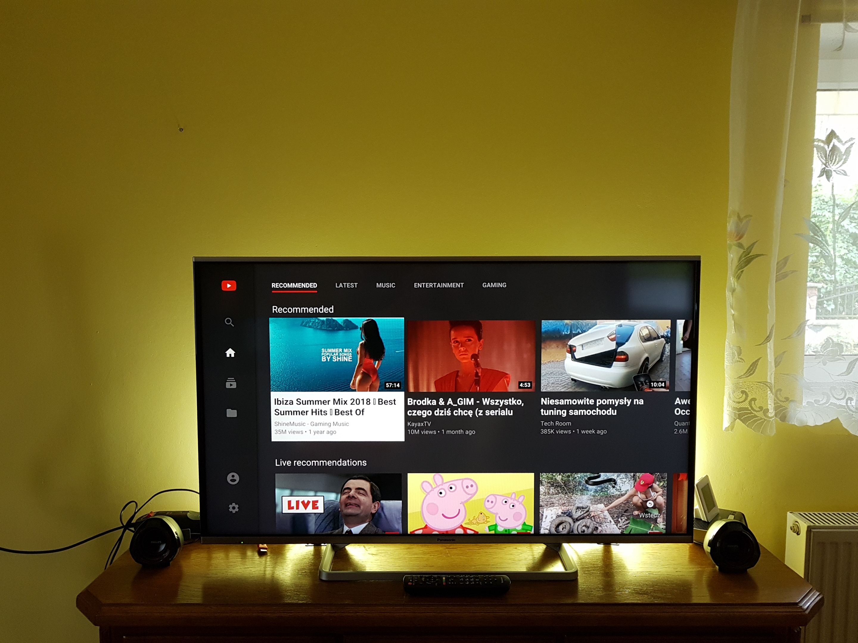 Podświetlenie za TV wygląda najlepiej, ale dałbym nieco słabsze.