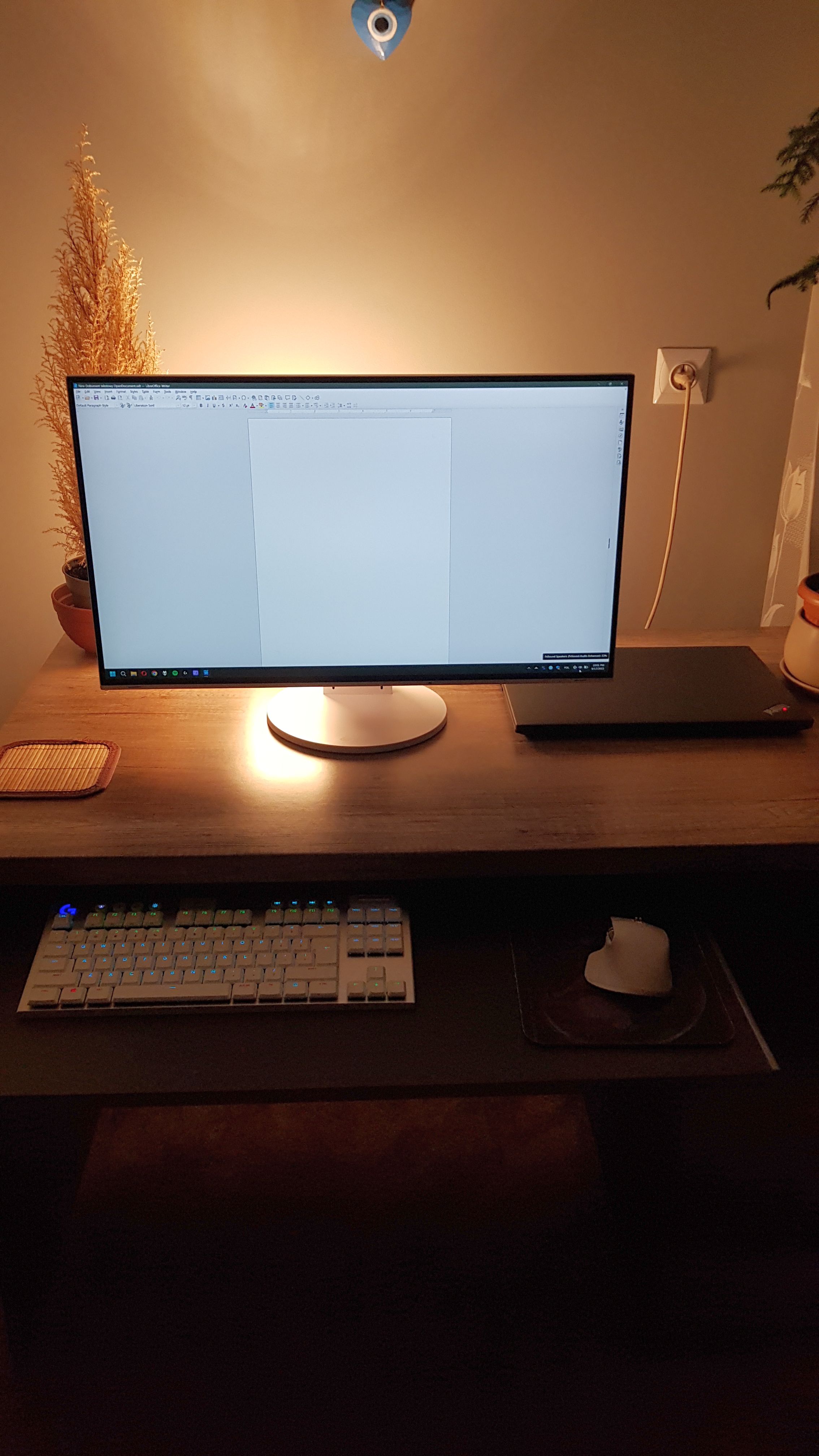 Od dłuższego czasu szukam dla siebie idealnj mało męczącej konfiguracji stanowiska pracy szczególnie w godzinach wieczornych. Poczytałem sporo na forum odnośnie odpowiedniego oświetlenia, kontrastu itp. Od lat jestem użytkownikiem typowo laptopowym, raczej nie korzystam z monitorów zewnętrznych. Jakiś czas temu jednak skusiłem się na polecanego Nec'a EA271U, użytkowałem go jakiś czas jednak ostatecznie nie mogłem się przyzwyczaić i go oddałem. Po około roku czasu ponownie postanowiłem spróbować, tym razem dla odmiany zakupiłem Eizo EV2785.