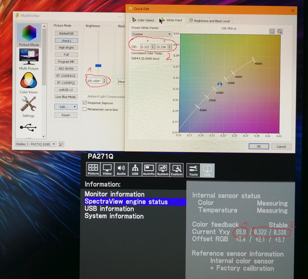 Nie było sensu kalibrować PA271Q, nie potrzeby tym bardziej w PA311D. Pokazałem już, że MultiProfiler daje dokładniejsze ustawienia od duetu SVII + i1DP.