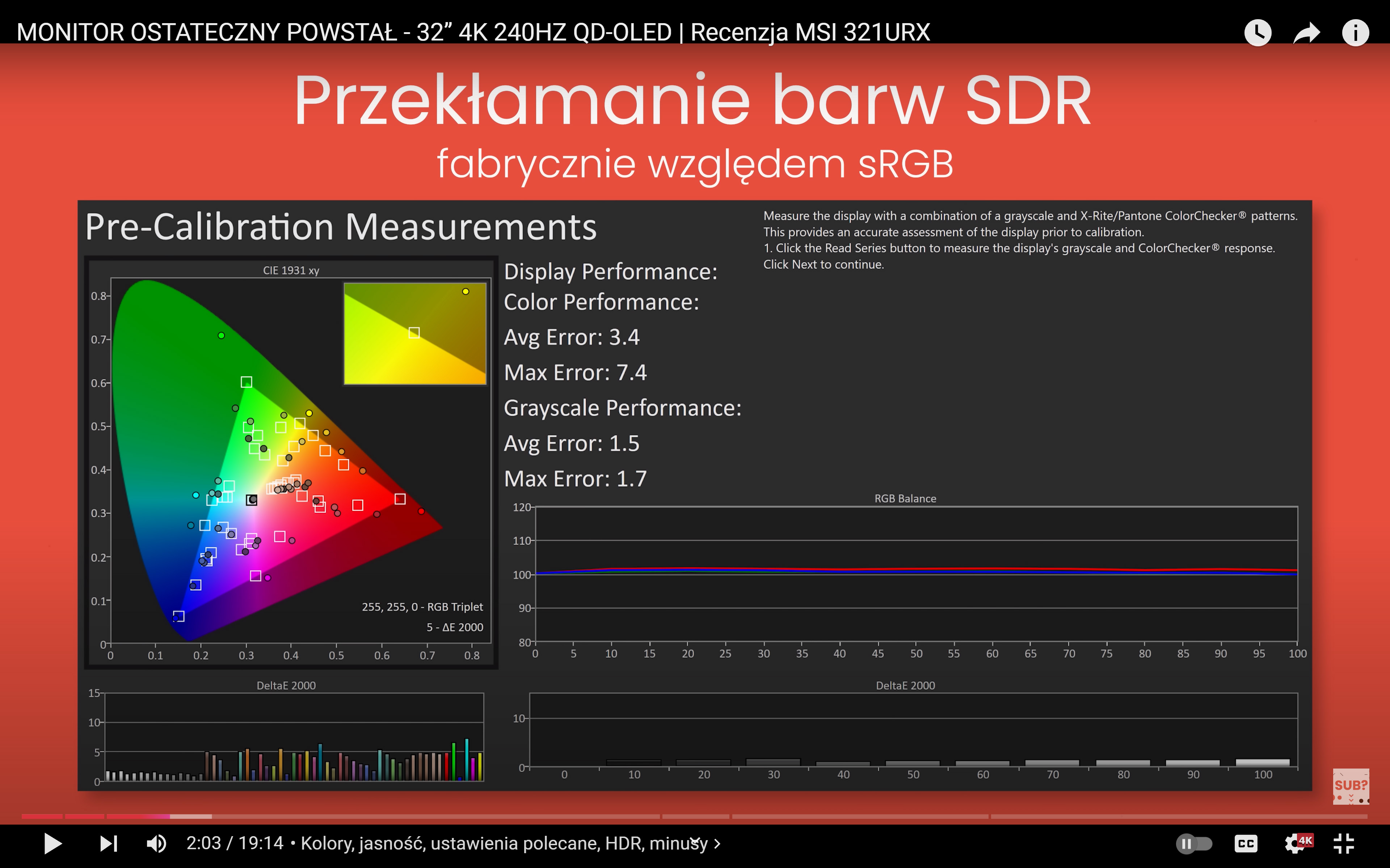 Moment, czyli w podlinkowanym filmie o monitorze MSI co jest mierzone w trybie srgb i chwalone?