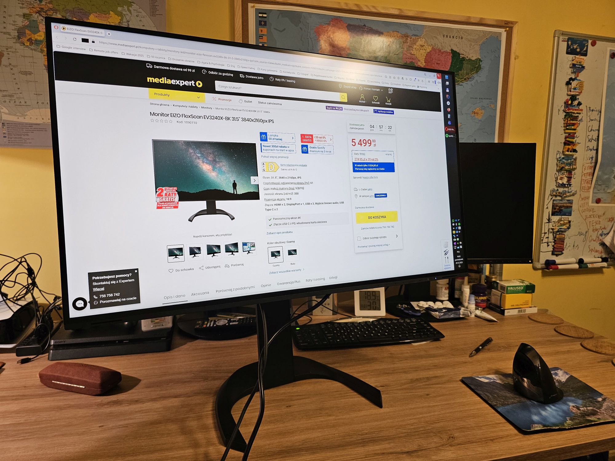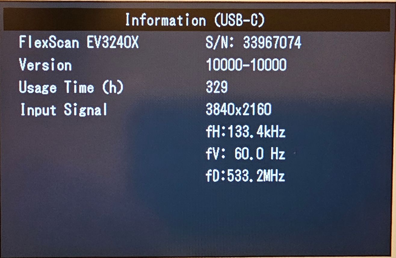 Sprzedam monitor 4K klasy premium - Eizo EV3240X 31,5 cala w kolorze czarnym. Monitor był używany w standardowych warunkach biurowych (praca zdalna). Licznik czasu pracy wynosi obecnie 329 godzin (dołączone zdjęcie z menu OSD).