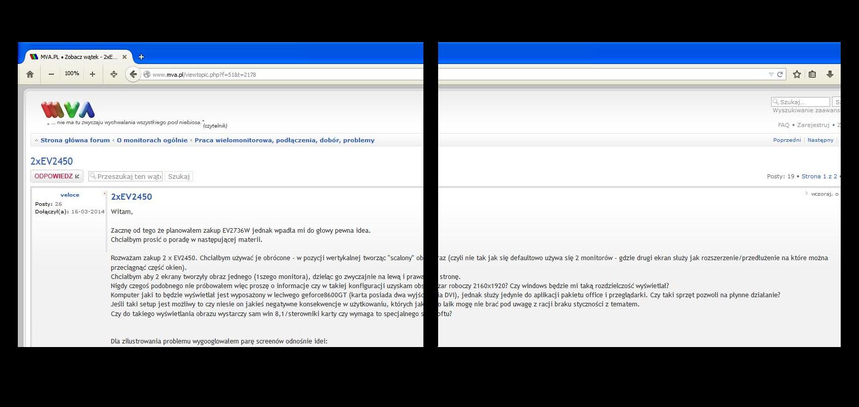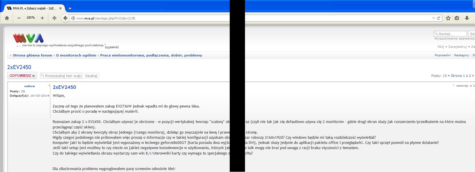 Rozważam zakup 2 x EV2450. Chciałbym używać je obrócone - w pozycji wertykalnej tworząc "scalony" obraz (czyli nie tak jak się defaultowo używa się 2 monitorów - gdzie drugi ekran służy jak rozszerzenie/przedłużenie na które można przeciągnąć część okien).