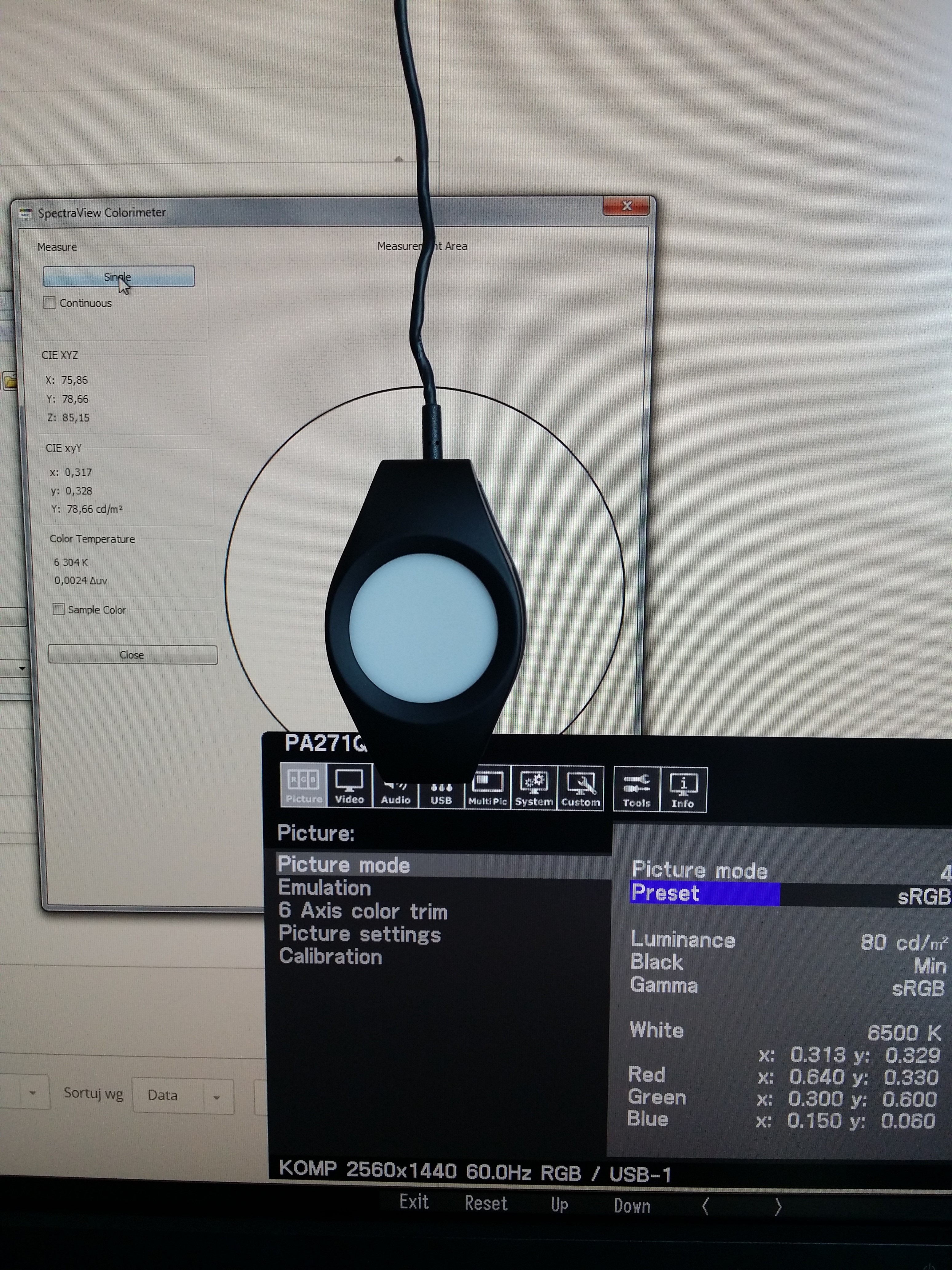 W 90% przypadków sRGB wystarczy i od tego radzę zacząć. Jasność 120 nitów też nie jest sugerowana na sztywno. Musisz dopasować do otoczenia, aby monitor nie raził i nie był zbyt jaśniejszy od tła. Jak nie jesteś pewien wartości to eksperymentuj. MP daje dużą elastyczność i łatwość korekt. Użyj Wizard > Custom i dopasuj ustawienia. Punkt bieli skoryguj ręcznie na wartościach x,y (sugerowane) lub myszką złap za kropkę i przesuwaj. Też bym chyba dociągnął PA272W pod nowy. Profile utworzy i przypisze automatycznie do systemu MultiProfiler, o ile ma zaznaczoną tą opcję w ustawieniach.