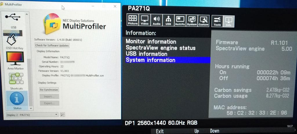 Nowe monitory, jakie mam w tej chwili, mają pakowanie nieotwierane. Co ma być zaklejone, jest zaklejone. Firmware się różni, grupa numerów seryjnych też. Jednak błąd jak był tak jest. Nie wiem co NEC z tym zrobi, ale ten monitor się nie nadaje do kalibracji popularnymi narzędziami.