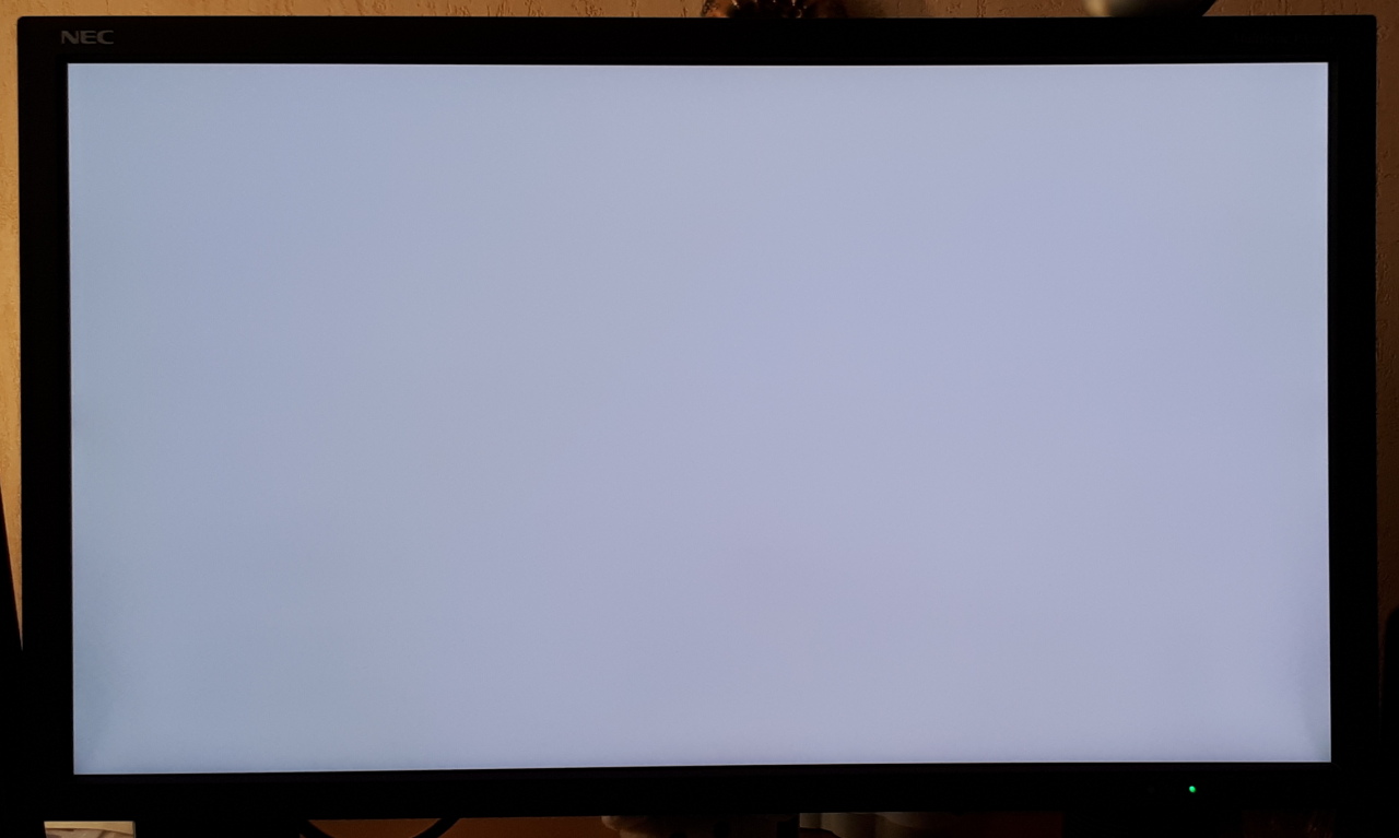 Biel wychodzi trochę czerwona przez mocny czerwony luminofor w monitorze GB-r LED i nieprawidłowy balans bieli aparatu Samsunga, ale tak wyszło. W rzeczywistości ekran nie ma czerwonego zafarbu.