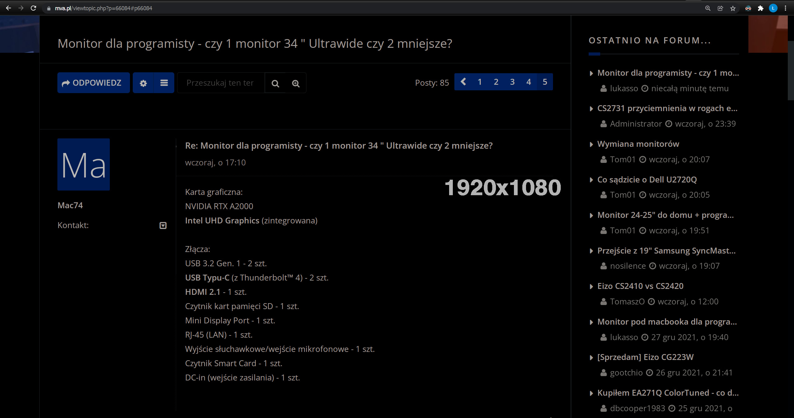 Dziękuję Wszystkim za opinie, wyeliminowałem wcześniej rozważaną opcję 1 monitor 34 " Ultrawide., wszyscy polecacie pracę z 2 monitorami 27 "