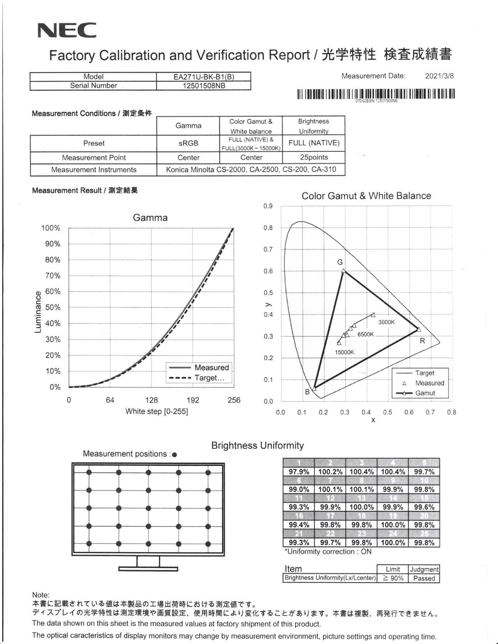 . Poniżej grafika z kalibracji (data 2021-09-20) tą "atomową" konicą-minoltą