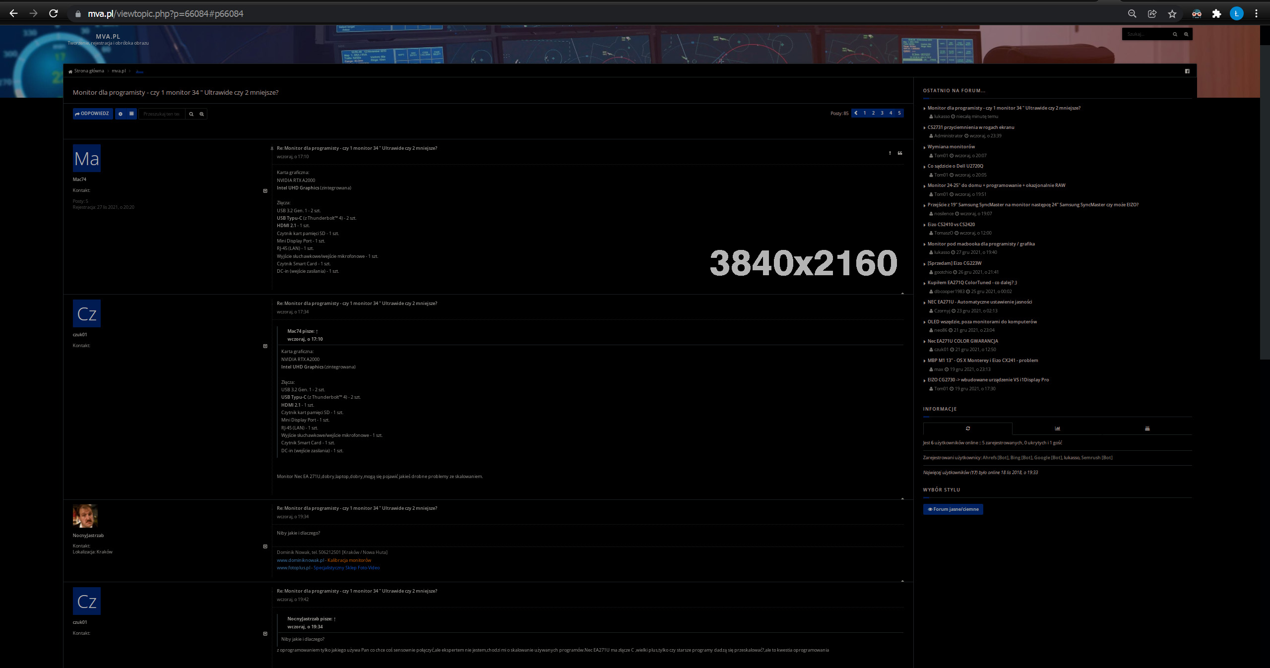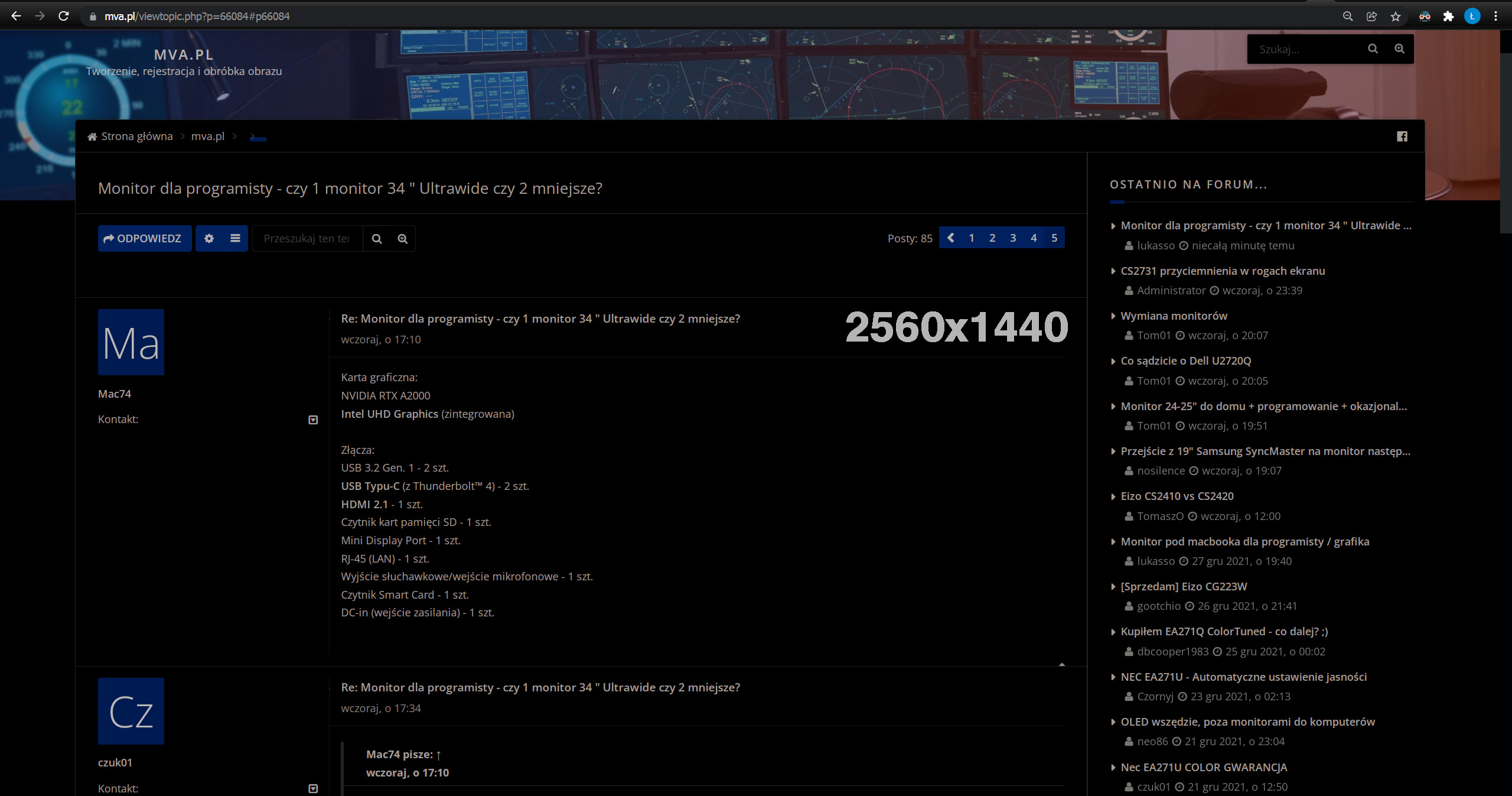 Dziękuję Wszystkim za opinie, wyeliminowałem wcześniej rozważaną opcję 1 monitor 34 " Ultrawide., wszyscy polecacie pracę z 2 monitorami 27 "