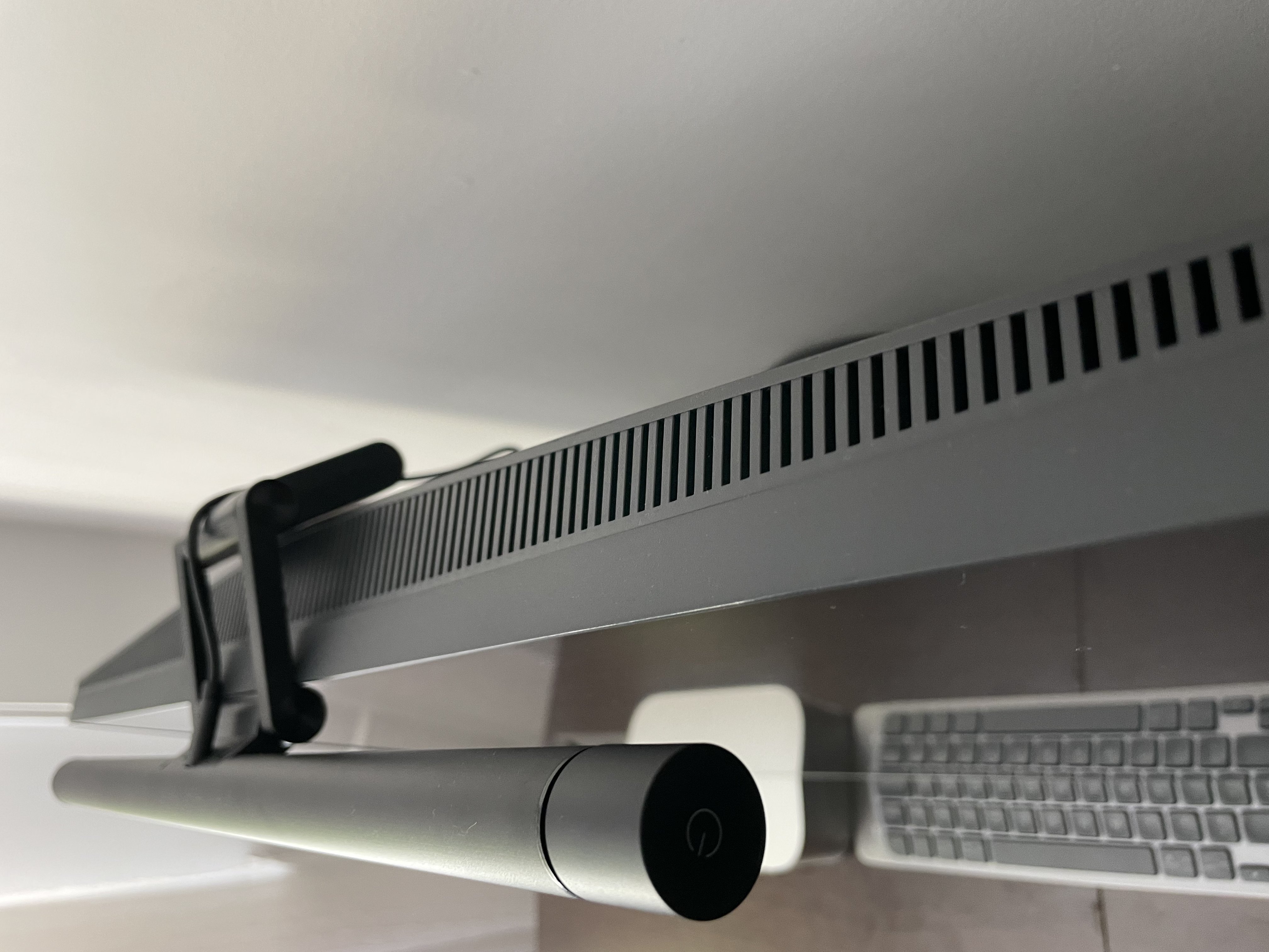 Ideą tej lampki jest doświetlanie powierzchni biurka przed ekranem. Jednak takie światło zaburza postrzeganie obrazu monitora i w praktyce jest rzadko spotykane/stosowane. Już na pewno nie przy pracach związanych z kolorem. Także trzeba kombinować bardziej z oświetleniem tła, jak przykład powyżej.