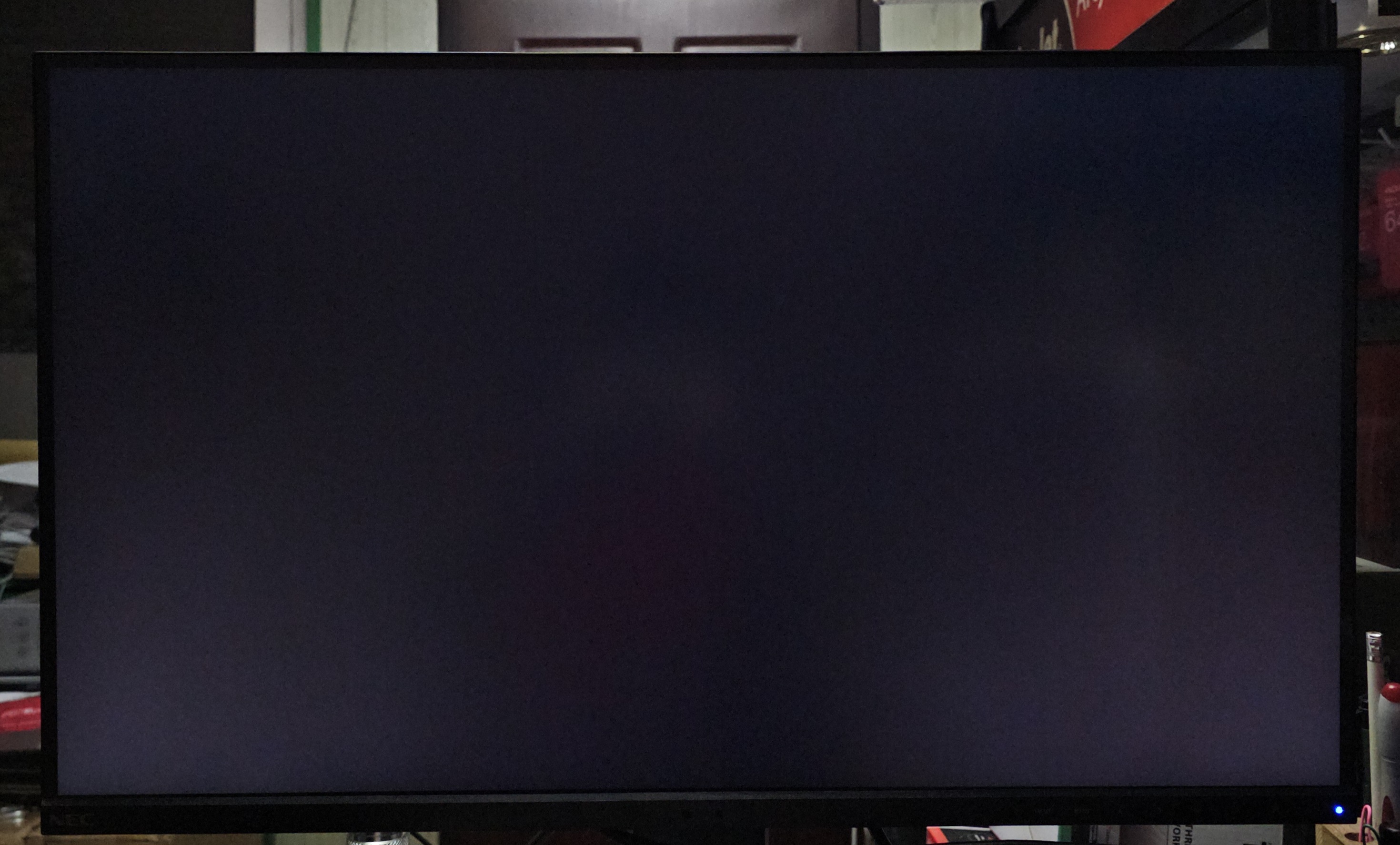 To standard w IPS, nie w tym modelu. Taki "test" jak na zdjęciu jest całkowicie bezsensowny. Przecież nie kupuje się nowego monitora aby oglądać czarne ekrany po ciemku. Konfiguracja samego ekranu i otoczenia ma być taka, aby "czerń" LCD była całkowicie czarna. Tak jest poprawnie, nie inaczej.
