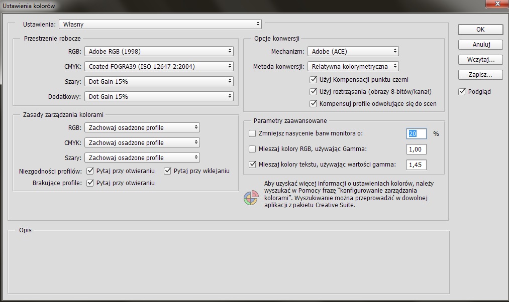 2. Ustawienia photoshopa kolor