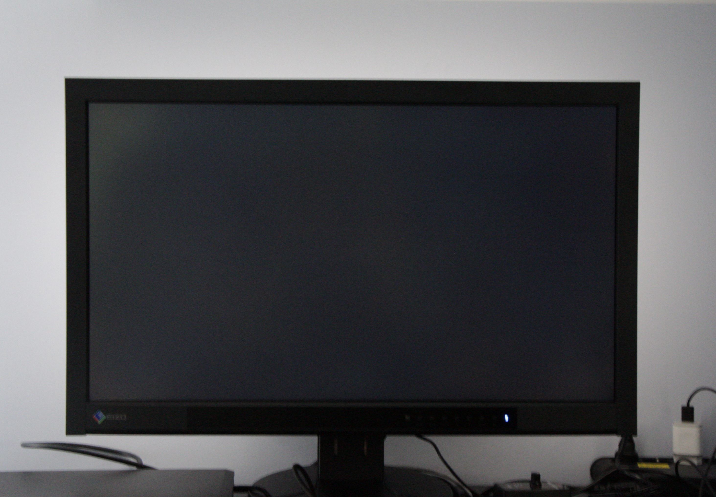 W pomieszczeniu ciemno, monitor ustawiony na okolice 80 nitów. Niestety nie zauważyłem poblasku od otwartych drzwi do innego pomieszczenia, przez co jest jaśniejszy prawy górny róg. To jest egzemplarz selekcjonowany, indywidualnie wyrównywany.