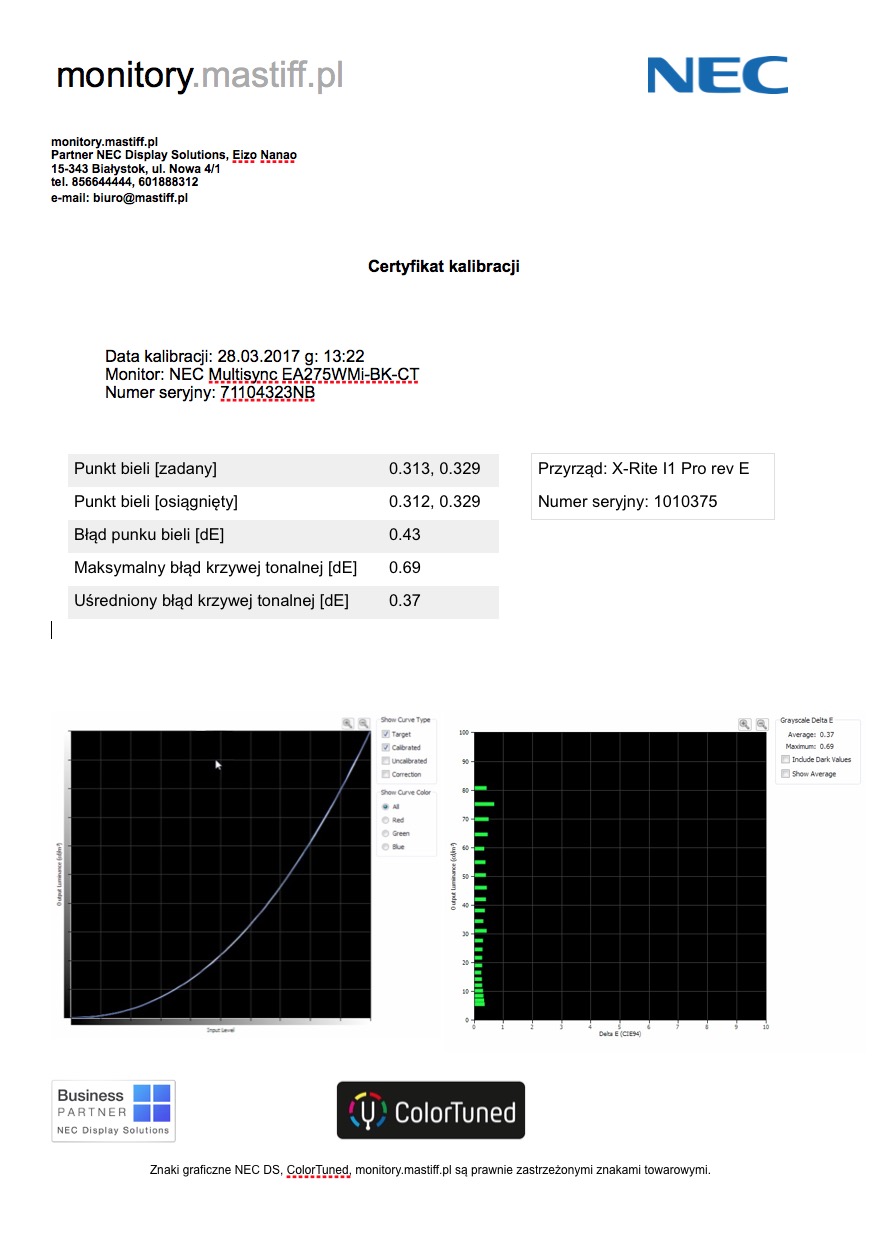 No właśnie. Dokładnie to co napisałem. Nieważne jaki, ale papier jest. Tyle że pierwsza lepsza biurówka dobrej klasy ma CZTERY RAZY mniejsze błędy niż napisano na tym "certyfikacie". Aby nie być gołosłownym, poniżej pomiary konkurencyjnego NEC EA275WMi-CT. Proszę porównać: