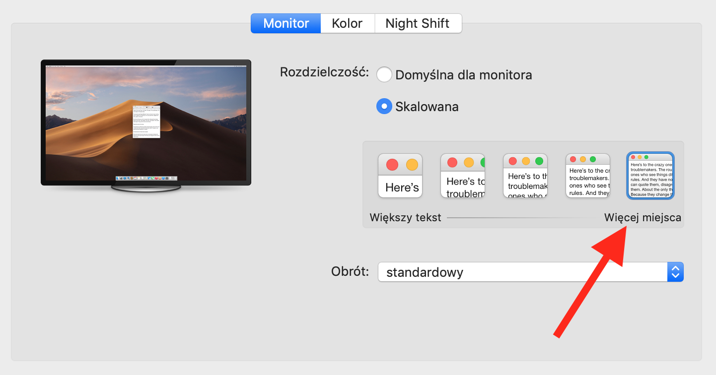 Tak tez mam ustawione. Wydaje mi się że w Mojave nawet pisze jaka to rozdzielczosc pod obrazkiem po lewej na twoim wklejonym zdjeciu i to nie jest 2560x1600. Sprawdzę po powrocie do domu.