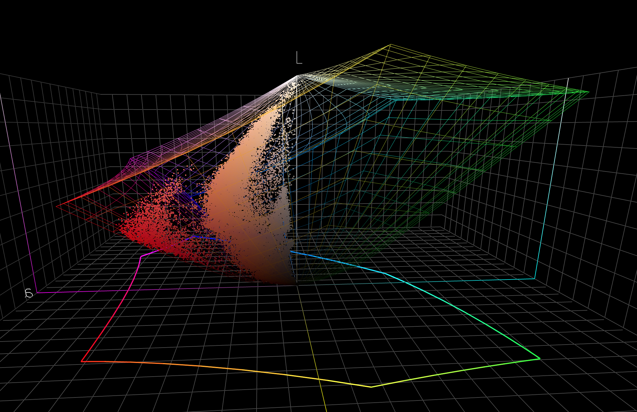 Oprócz braku profilu, da Pani rękę uciąć, że na obcym komputerze, innym monitorze kalibracja i specyfika ekranu będzie taka sama? Jest normalne, że na ekranie laptopa czy jakimkolwiek innym wygląda inaczej. Tym bardziej, że kolorystyka tej fotografii jest bardzo mocna, wręcz przewalona i sprzyja pogłębianiu różnic na różnych ekranach o przestrzeniach nawet minimalnie większych niż sRGB szczególnie w zakresie czerwieni. Na pierwszy rzut oka też miałem wrażenie, że jest nienaturalnie czerwone. Proszę spojrzeć na analizę odcieni. Część jest wręcz przyklejone do granicy gamutu a cała skóra jest bardzo wysycona. Takie zabiegi skracają dostępną paletę (Pani zdjęcie zawiera bardzo mało unikalnych odcieni) i proszę pamiętać, że monitory kłamią tym bardziej, im mniej odcieni. Przy kolorach wybiórczych wręcz kłamią dramatycznie, co spędza sen z powiek ludziom zajmującym się fotografią produktową.