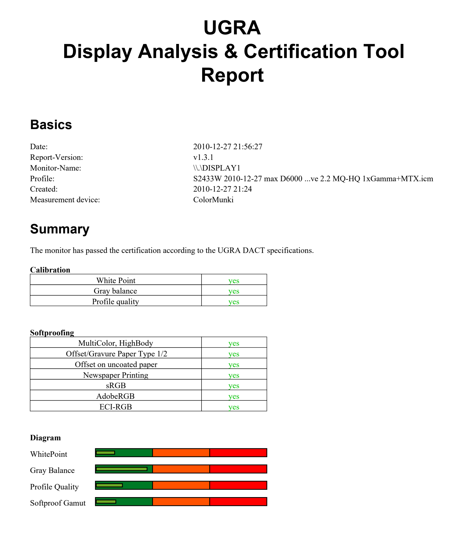 Poniżej wyniki losowego egzemplarza. Zaznaczam, to jest monitor bez kalibracji sprzętowej i bez stabilizacji podświetlenia.