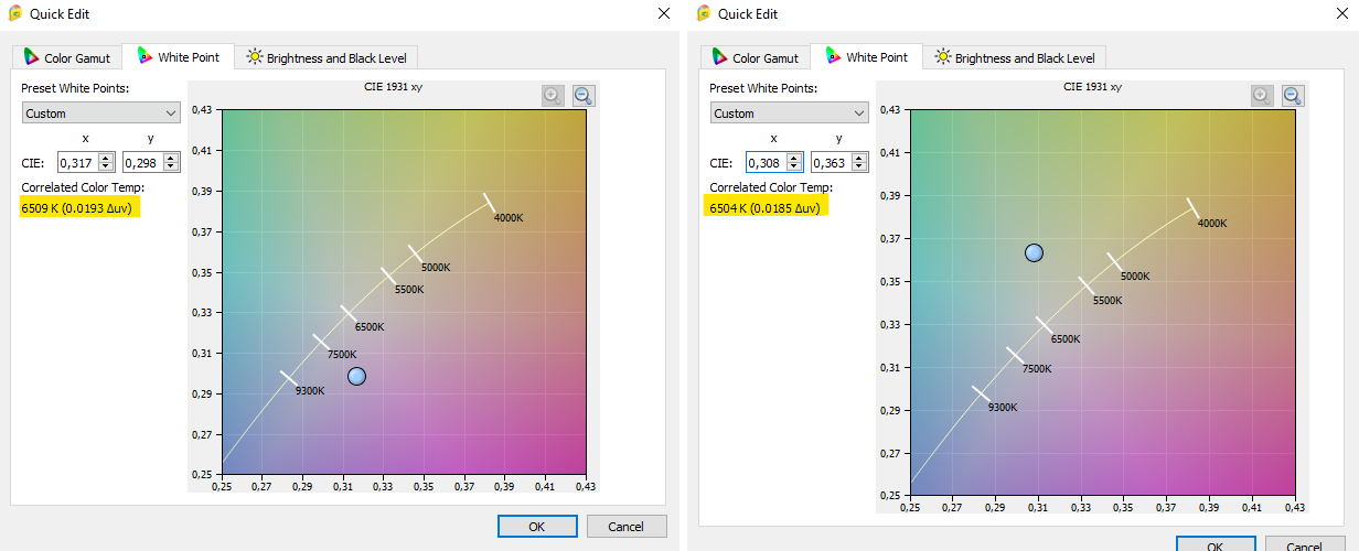 Gotowe wstępne nastawy ma każdy monitor. Tylko sprawa się rozchodzi o poprawność (dokładność) tych wskazań. Skąd wiesz, że jest faktycznie np. 6500K? Nie będziesz wiedział bez pomiaru! Sama informacja o temperaturze barwowej nie jest wiążąca. Dlatego się używa pojęcia "punkt bieli" o konkretnych współrzędnych, dla których biel jest neutralna ("ustandaryzowana"). Dana temperaturę barwową można uzyskać przez różne kombinacje współrzędnych, tylko biel będzie miała wtedy zafarby.
