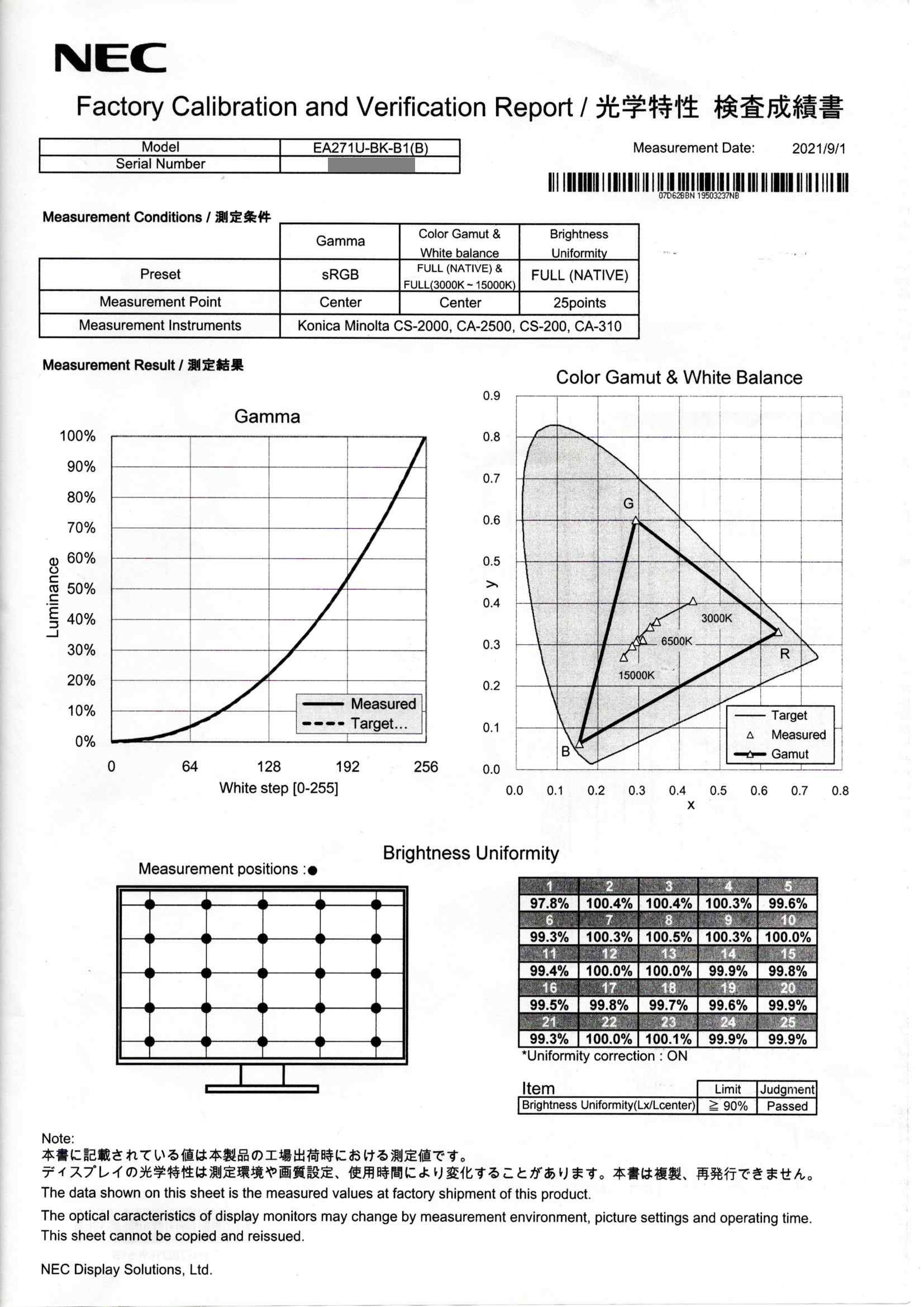 Od niedawna jestem posiadaczem NEC EA271U. Przeczytałem większość wątków na tym forum dot. tego monitora. Moja obecna (tymczasowa) konfiguracja to monitor podłączony przez HDMI pod laptopa z kartą graficzną Intel HD Graphic 3000 + NVIDIA GeForce GT 540M. Rozdzielczość ekranu to 2560x1440_55Hz (najwyższa jaką udało mi się ustawić. W najbliższym czasie planuję zakup nowego komputera, aby w pełni wykorzystać możliwości monitora. Sprzętu używam do projektowania CAD oraz na własne potrzeby do obróbki zdjęć. Mam do szanownych forumowiczów pytanie - czy w tej chwili jest sens kalibracji sprzętowej monitora, czy dopiero po wymianie PC? Po analizie wyświetlania monitora (dzięki temu forum) - "rzeźnik" i jeszcze dwa obrazy załączone na forum - wynik jest taki jak na załączonych zrzutach. Próbowałem różnych ustawień i jedynie zmiana parametru gamma w ustawieniach karty graficznej poprawia obraz, ale kosztem "jasności" - obraz jest zbyt ciemny i nie do przyjęcia, Załączam jeszcze skan z Factory Calibration zakupionego monitora.