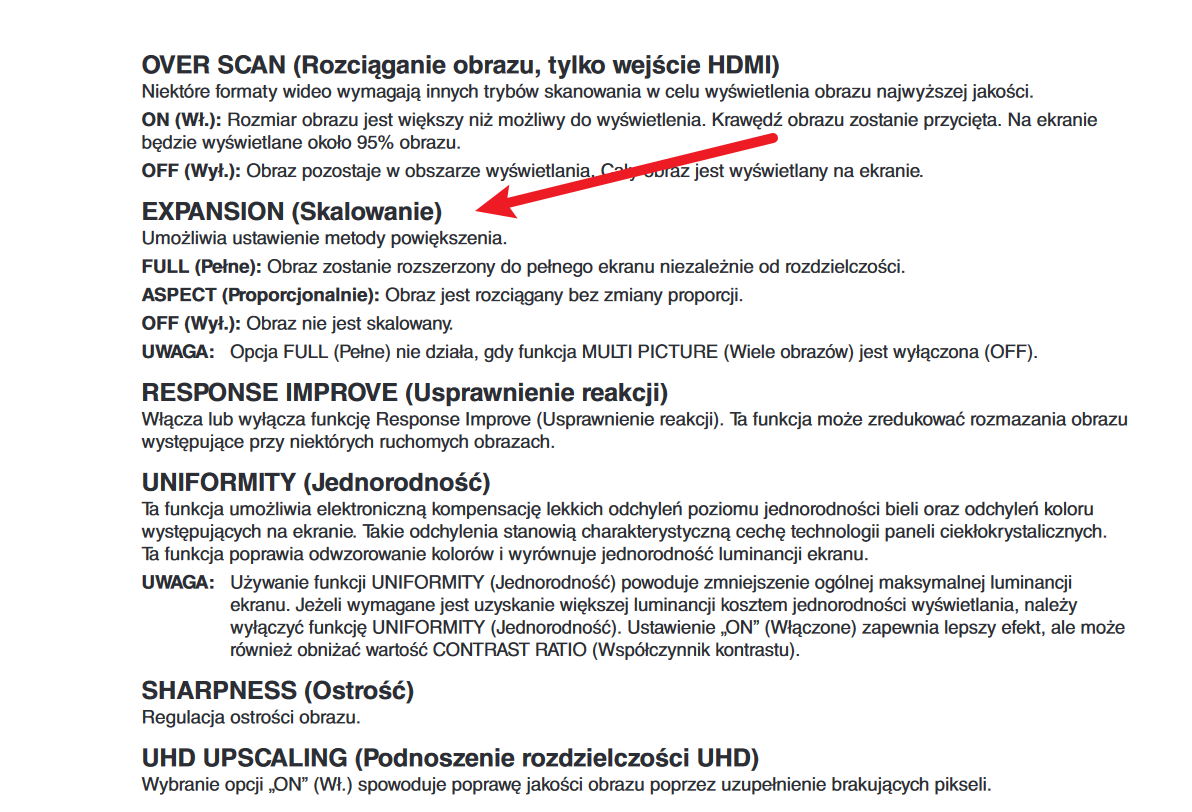 Po zmianie skalowania w OSD, na wszystkich ustawieniach poza DICOM SIM brak przebarwień, jest O.K. dzięki wszystkim za pomoc. Pytałem jeszcze o oprogramowanie do sterowania monitorem po usb przez PC o czym wspomniano w instrukcji.