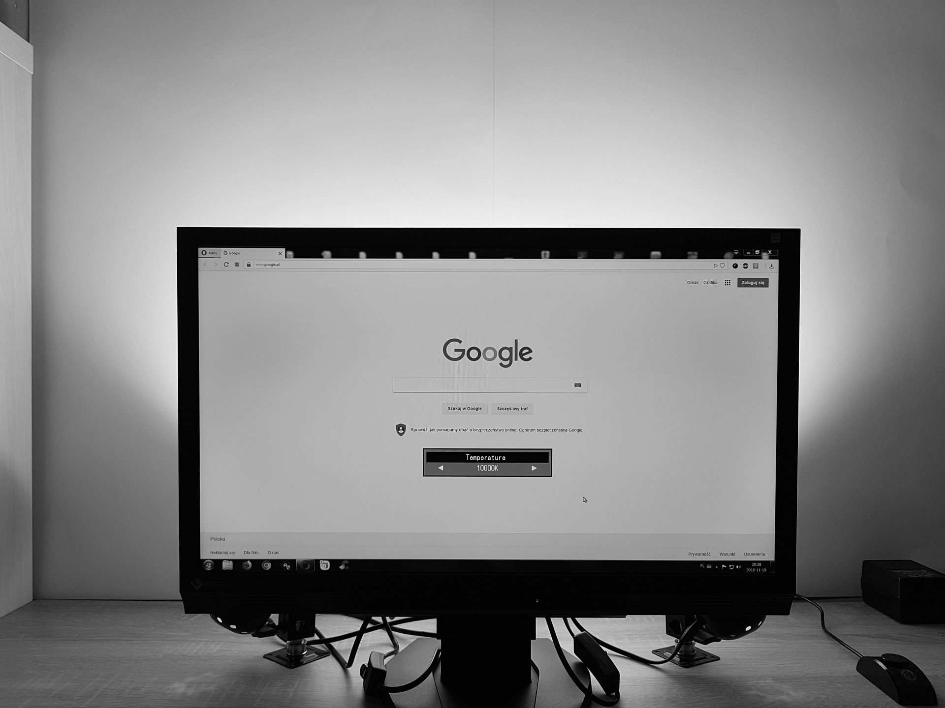 Nowe zdjęcia, tym razem czarno-białe i bez kolumn, świetlówki 2 x PHILIPS 6500K wcześniej wspomniane, ustawienia monitora: