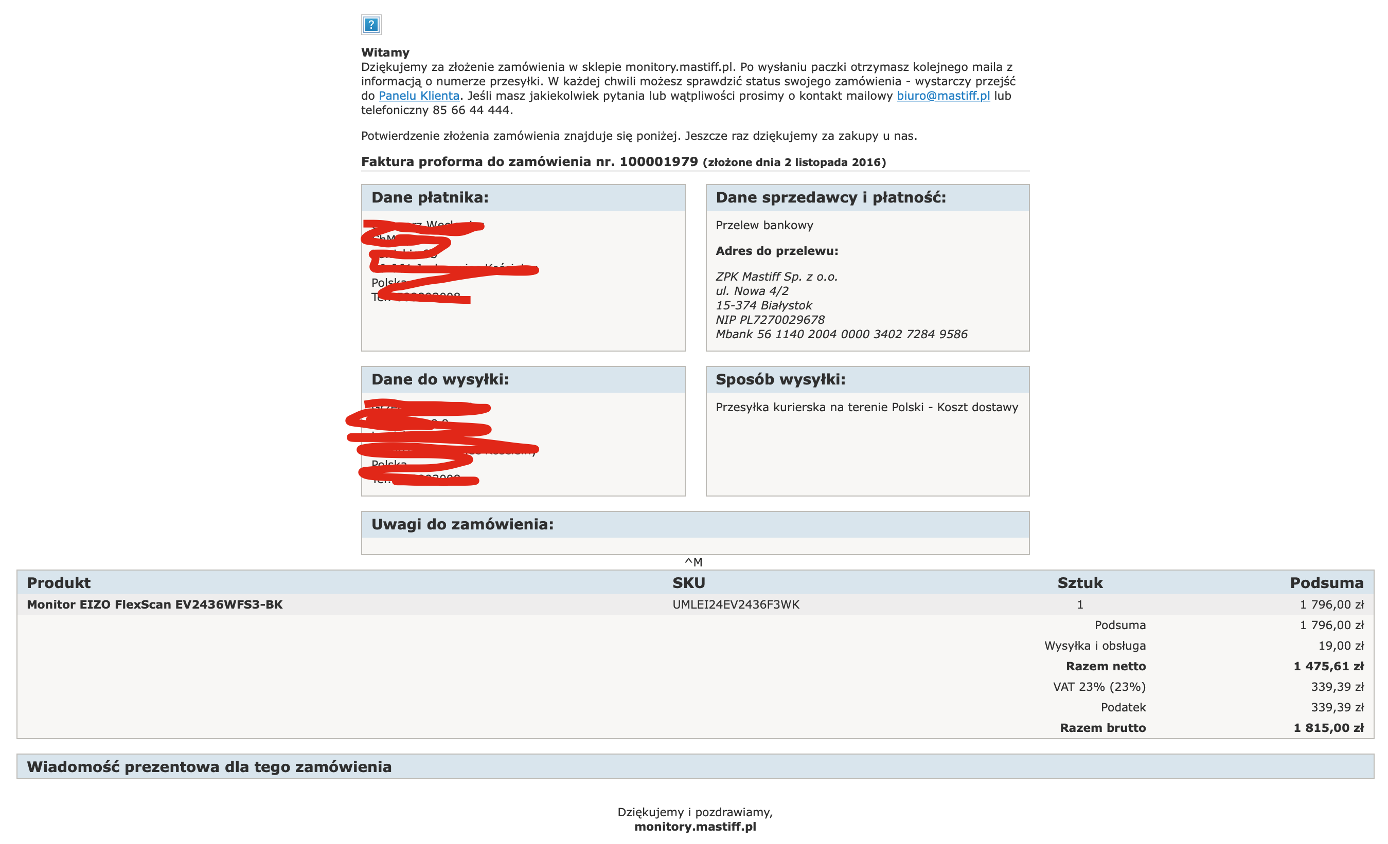 EV2451 jest skonstruowany z myślą o układach wielomonitorowych o więcej niż jedno "piętro". A'propos tanienia, wiem, ciągle powtarza Pan ten mit, nie pokazując ani jednego dowodu. A ja na to dowody mam. Przykładowo, weźmy poprzednika EV2436W. Pierwszy sprzedałem w 2012 roku za 1 918 zł (uwzględniając wyższą cenę za nowość) a jeden z ostatnich w 2016 roku za 1 815 zł. Tak jest zawsze i od lat. A niektóre modele wręcz drożeją, jeśli okazuje się, że następca jest rozczarowujący. Takich raportów jak poniżej, mogę pokazać setki. Nigdy żaden monitor na koniec sprzedaży drastycznie nie taniał. Nie spotkałem się z takim przypadkiem.