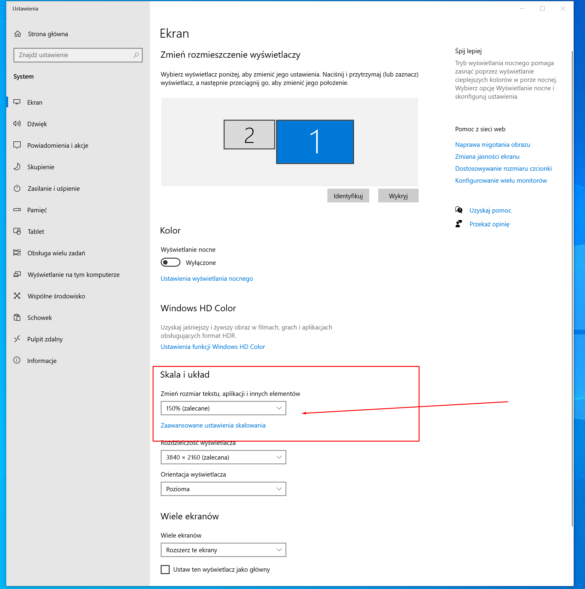 Acer ProDesigner PE320QK (3840x2160) 32' - nowy monitor jako główny natomiast NEC PA271W (2560x1440) 27' - jako dodatkowy monitor. W nowym monitorze, czyli ACER w ustawieniach zalecane jest skalowanie 150% czy tak zostawić? Jak to powinno być i co jest zalecane na tym forum ? :)