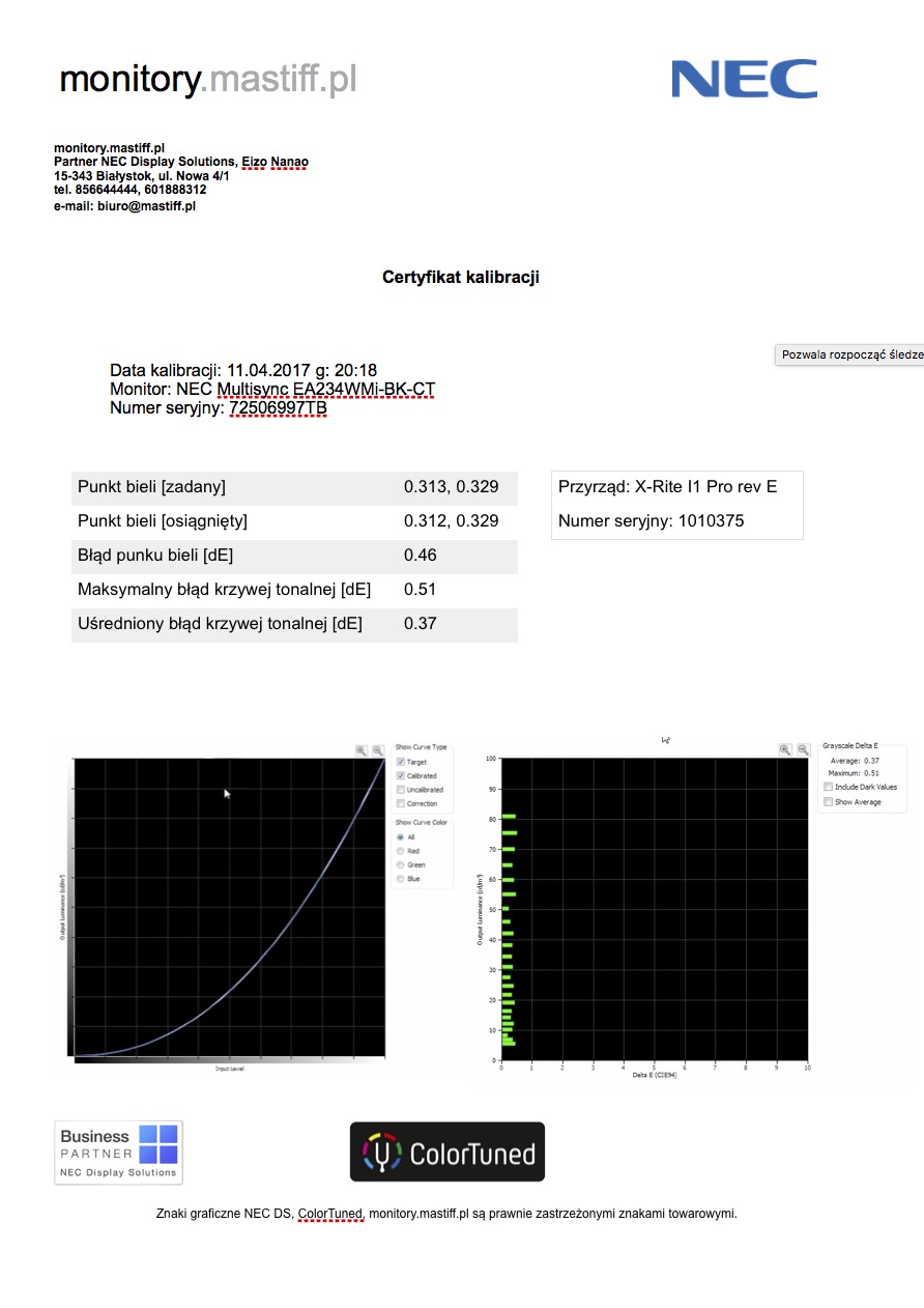 Ciekawi mnie też, dlaczego pominął Pan zdecydowanie najlepszy monitor w tej klasie cenowej czyli EA234WMi-CT. Poniżej przykładowy raport pomiarowy. Takie parametry to science fiction dla pozostałych wymienionych, porównywalne wyłącznie z monitorami profesjonalnymi: