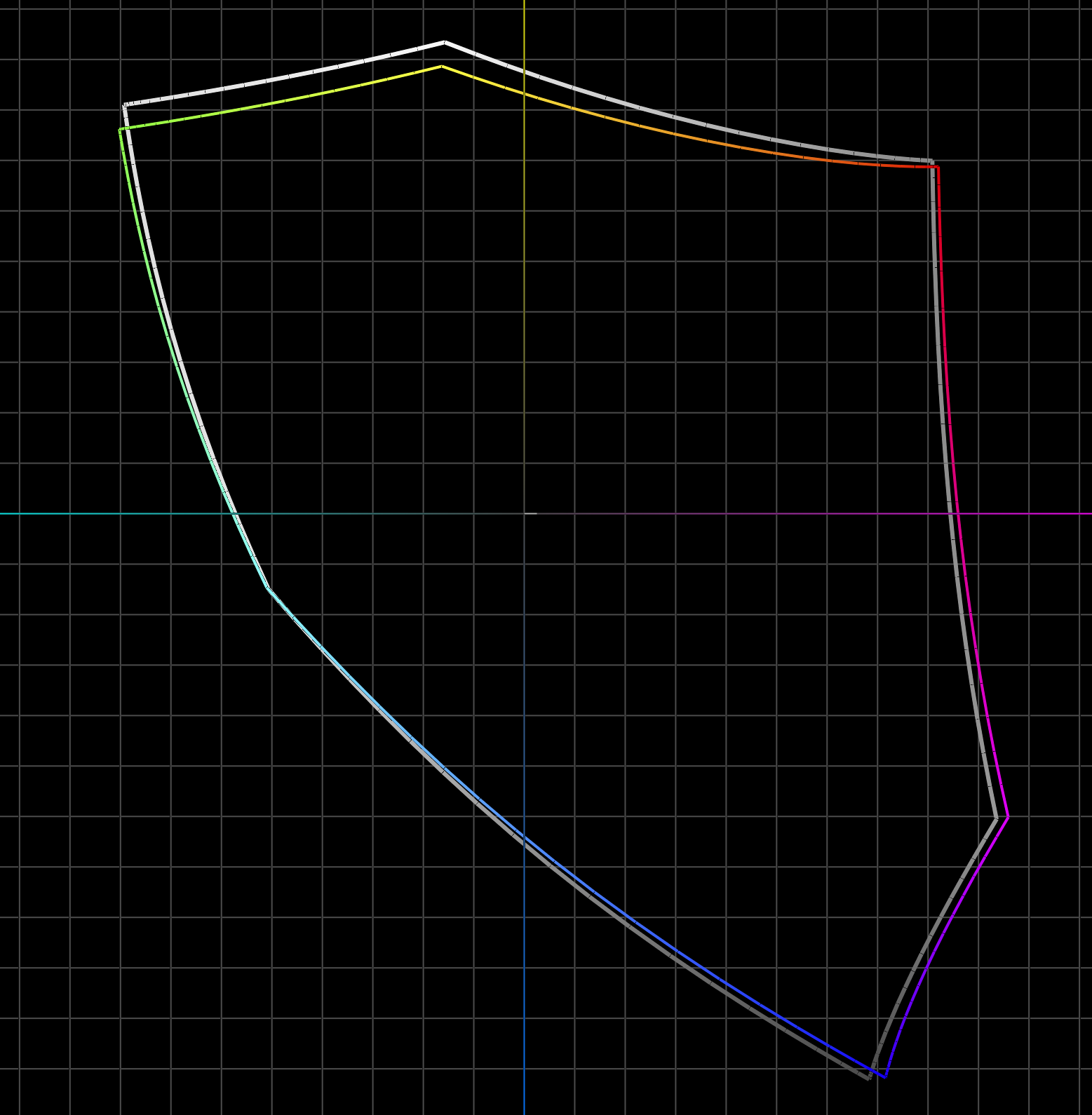 Poczytałam trochę i sprawa wygląda tak: za pomocą programu CalMAN przetestowałam wyświetlacz bez żadnej kalibracji. Wyglądało to tak: