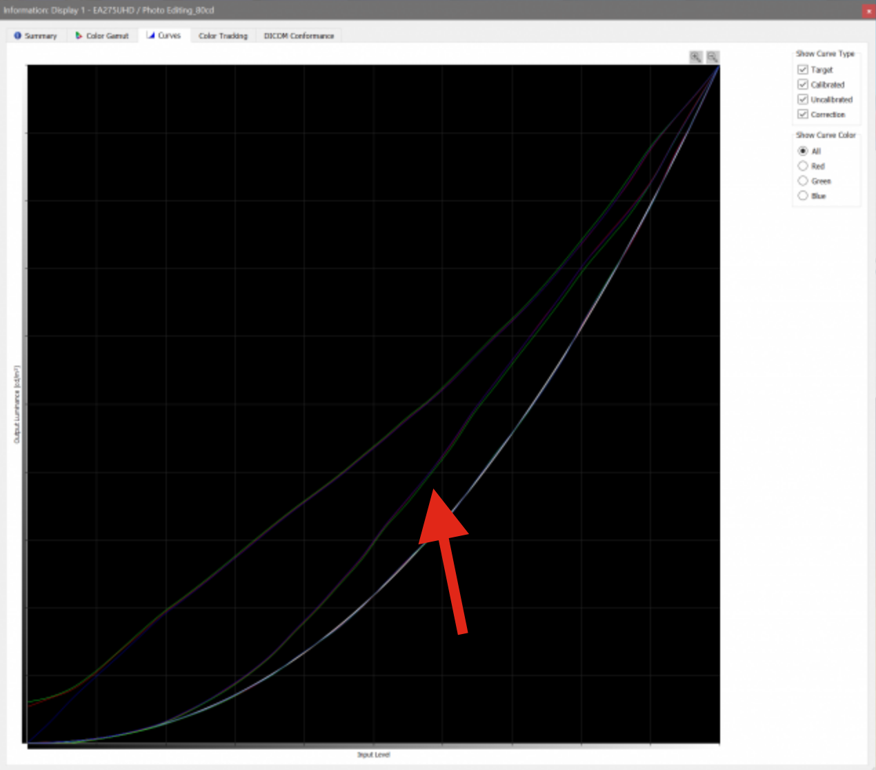Wykonałem re-kalibrację ustawiając Contrast Ratio 250:1, punkt czerni podniósł się do 0,40cd/m2 jednak w/w pliki wyglądają prawie tak samo.