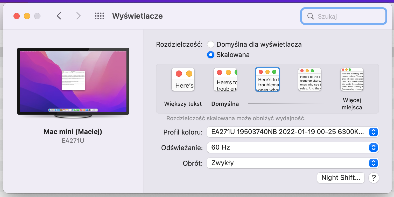 Przesyłam zrzut z mojego ekranu i cytat wyszukany w necie którego do końca nie rozumiem "Skalowanie w systemie macOS działa nieco inaczej niż w Windows.