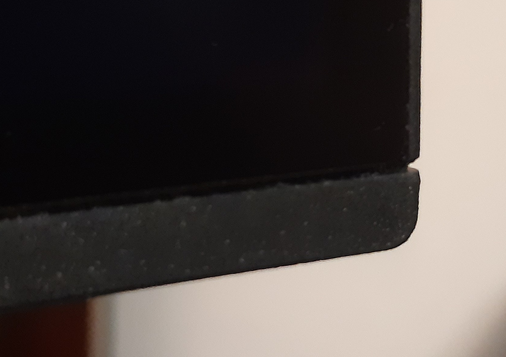 • dolna ramka/listwa jest źle spasowana. Na całej długości nie przylega dobrze do matrycy i przy lepszym oświetleniu widzę jakieś metalowe elementy w środku. Przy lewym i prawym brzegu ta ramka jeszcze mocniej odstaje od matrycy - jest w tych miejscach szpara ok. 2mm. Patrząc z profilu wygląda to badziewnie, jakby ta listwa miała się zaraz odkleić i spaść. Podobnie to wygląda jak na zdjęciach w tym wątku: viewtopic.php?p=66926&hilit=eizo+spasowanie#p66926