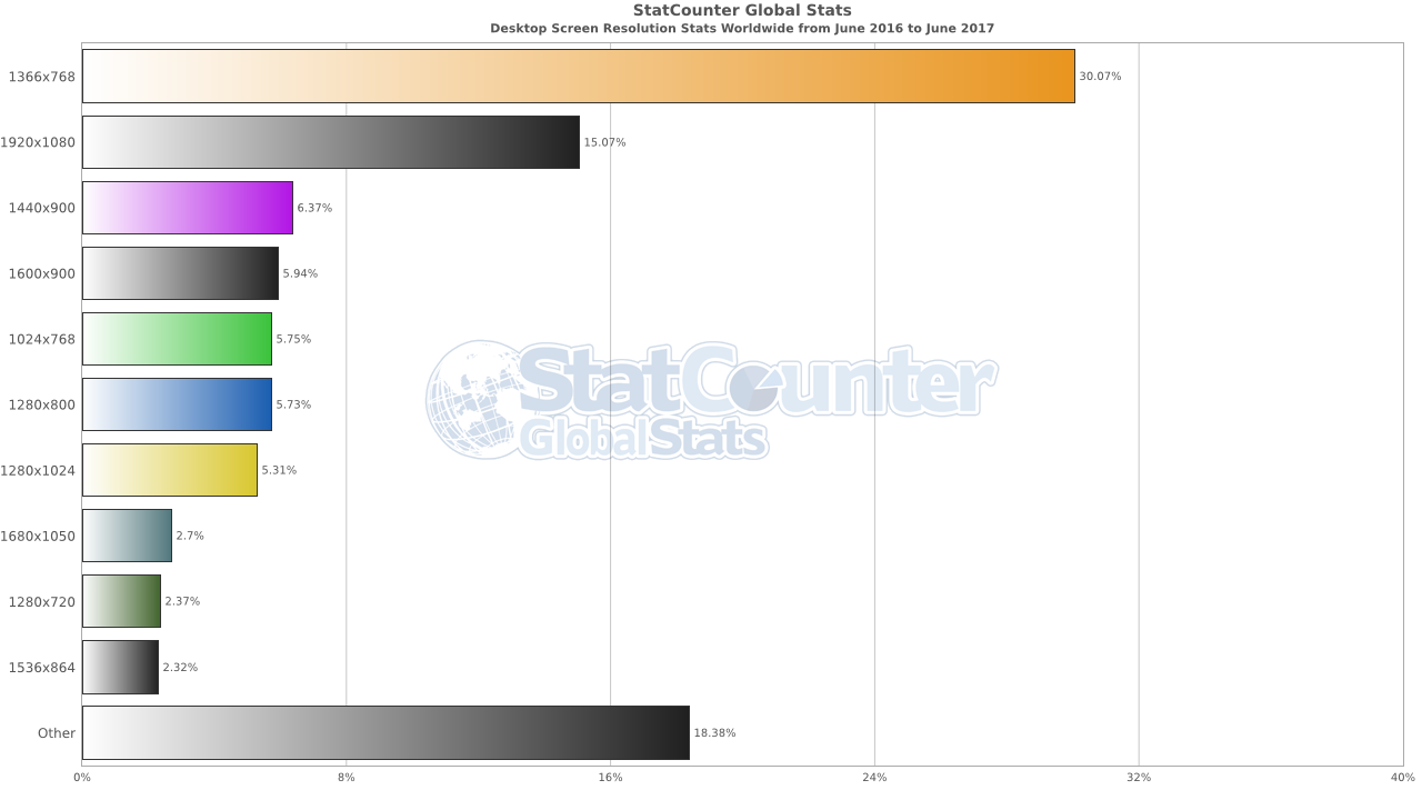 Wg danych zbieranych dzięki przeglądarkom internetowym, monitory o rozdzielczości 1920x1200 i wyższej to zaledwie kilka do kilkunastu procent użytkowników.