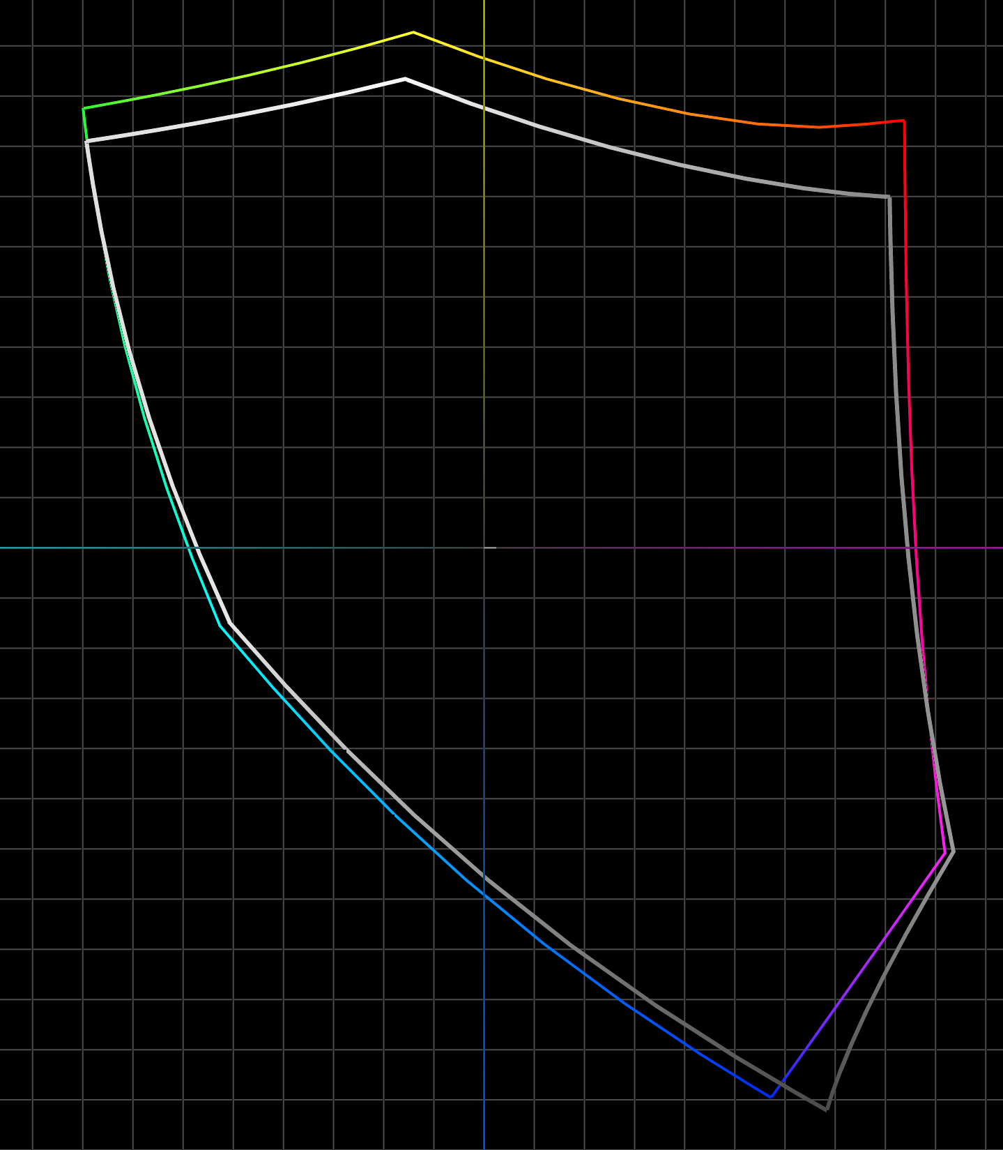 Wyniki te nie są może idealne, ale trzeba pamiętać o tym, że sam producent deklaruje 72-procentowy rozmiar gamutu sRGB, więc i tak uzyskane przez testowany przez mnie egzemplarz są lepsze.