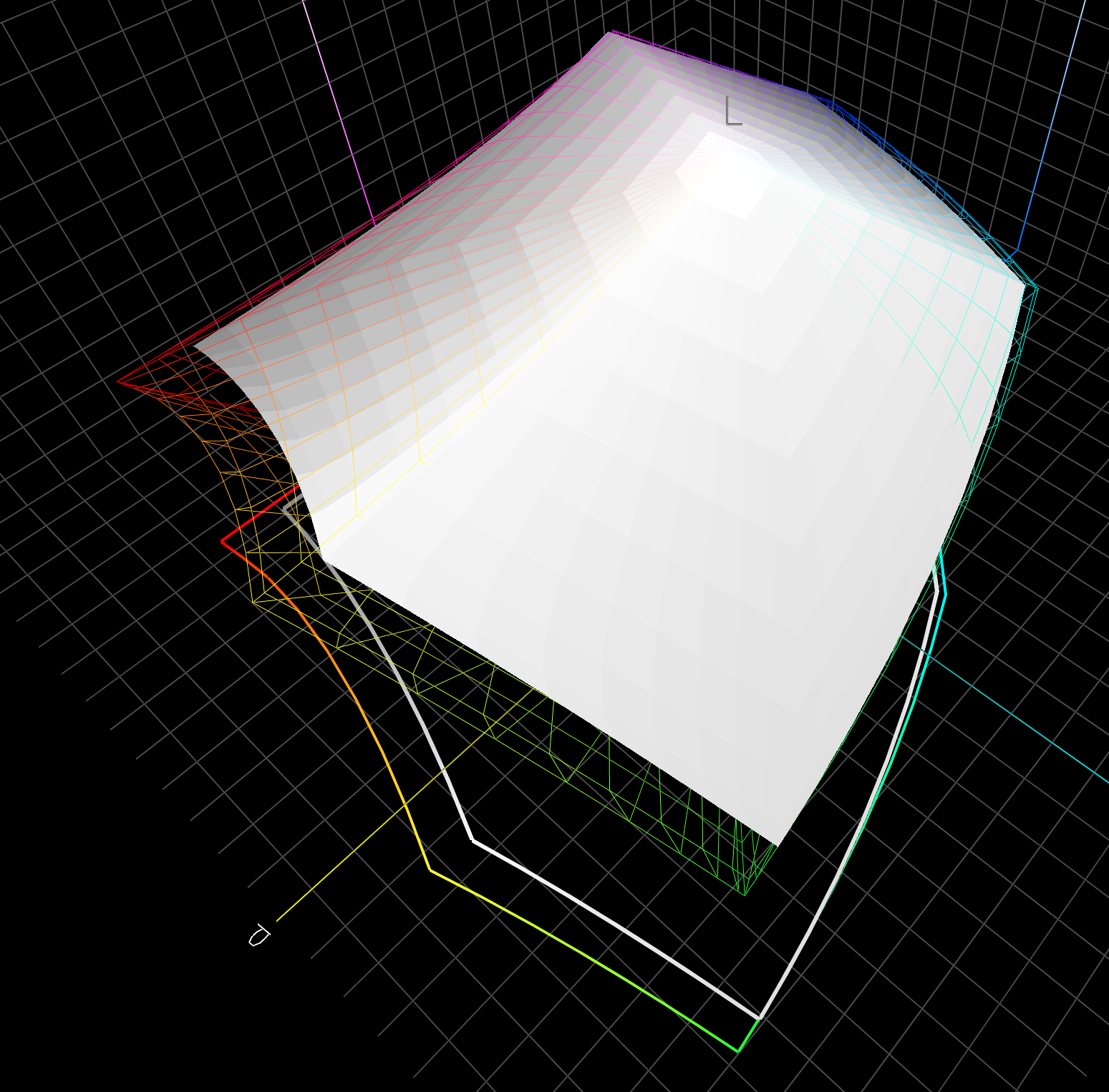 Ew zdjęta z monitora i rzucona na sRGB (biała) na poziomie L50 wygląda tak: