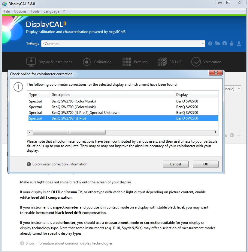 This way you can argue which one is better for that colorimeter and in which condition this happens (ZZZZ.ccss actual backlight sample).