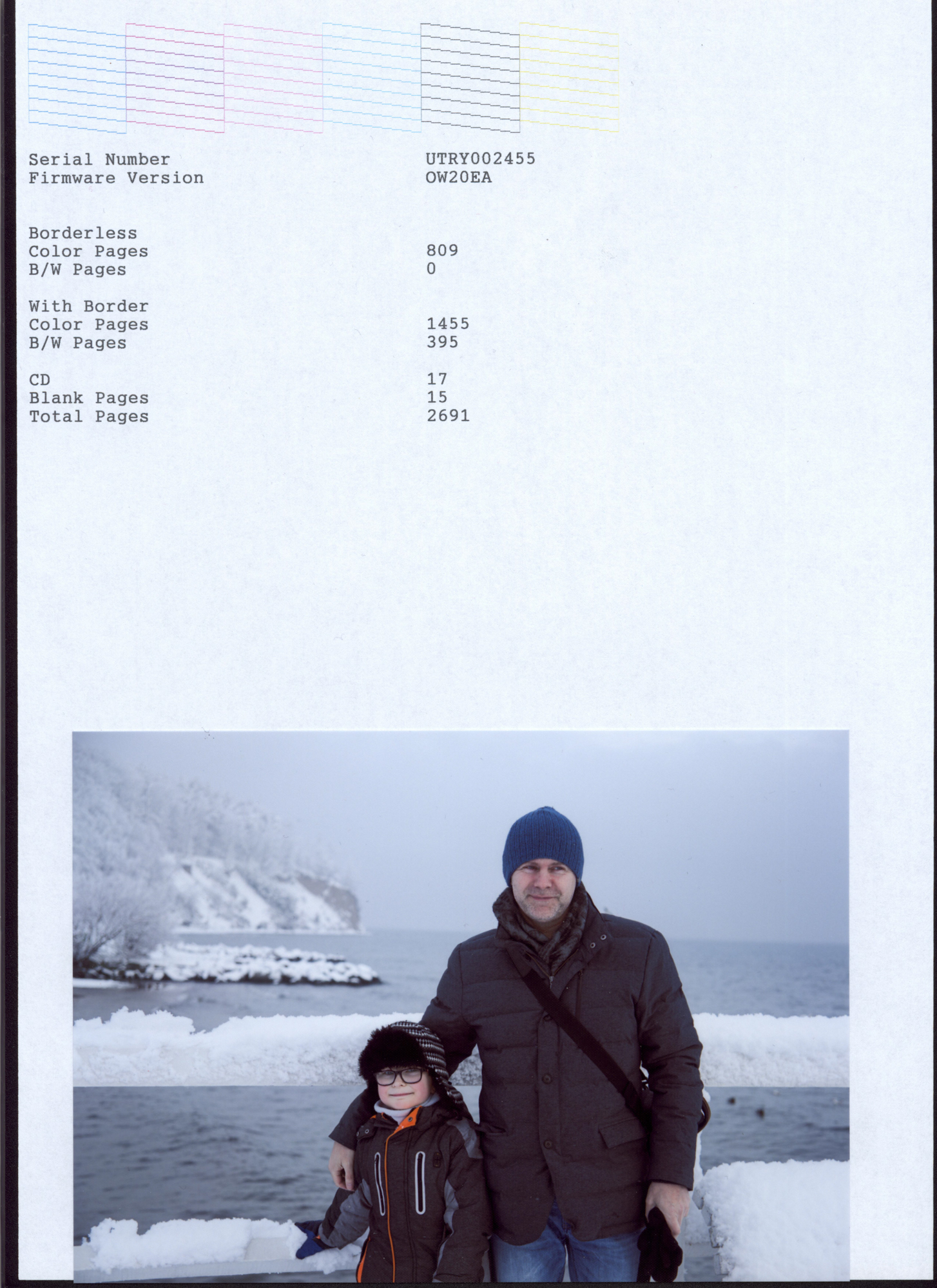 Wczoraj podczas drukowania zdjęć, drukarka zaczęła drukować subtelne ciemne paski.