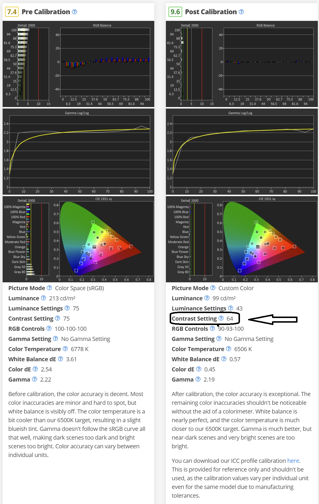 Nie mam jeszcze żadnego kalibratora-zastanawiam się nad wypożyczeniem. Wartość domyślna kontrastu w tym monitorze to 75-podobnie jasność. Zmniejszyłem ją w OSD do 64 jak widziałem na rtings.com. W tej chwili niczego nie kalibruję-pytam czy kalibracja poprawi wady monitora o których wspomniałem w pierwszym poście.