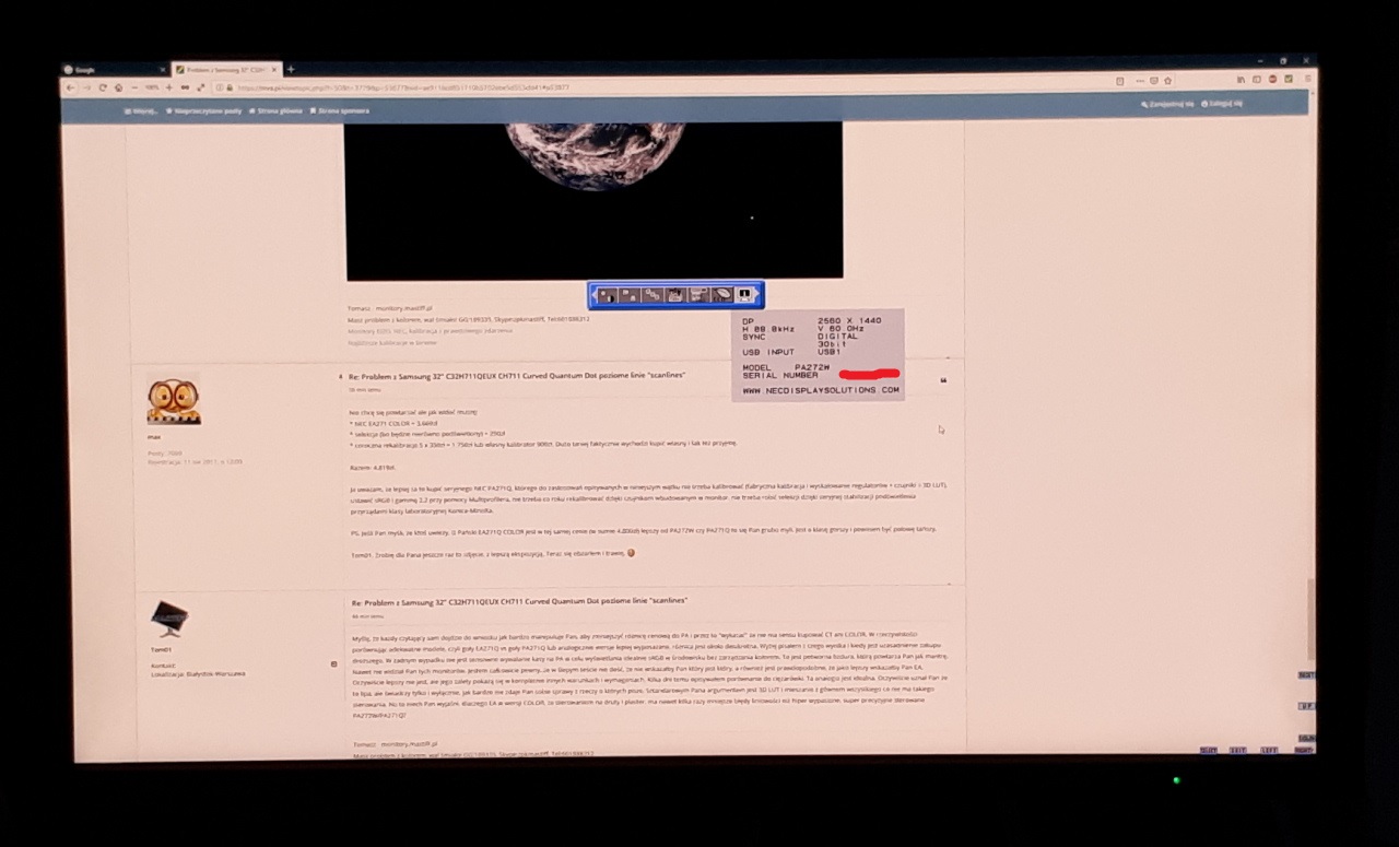 Re: Problem z Samsung 32" C32H711QEUX CH711 Curved Quantum Dot poziome linie "scanlines"