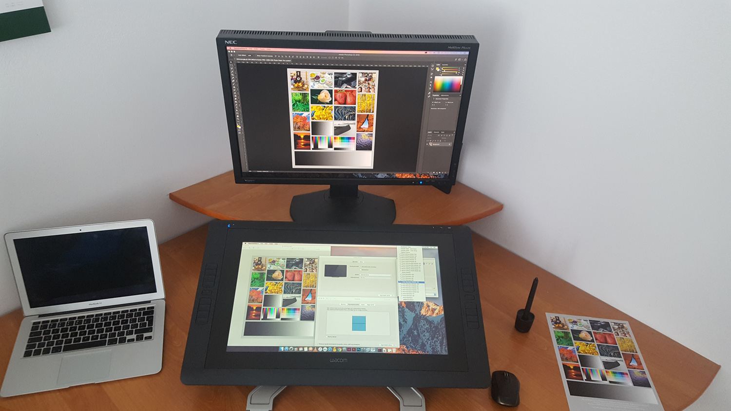 Jeśli chodzi o monitor to po sprawdzeniu wydruku kontrolnego według załaczonej instrukcji wszystko się zgadza. Wszystko wychodzi w praniu jak to mówią - sprawdzając w praktyce przy pracy z plikami do druku mogę spokojnie stwierdzić, że mam przed sobą monitor który mnie nie zawiedzie. W SpectraView zainstalowana paczka profili do różnych zastosowań - GENIALNIE ! Zaskoczeniem również był Wacom, po kalibracji ma bardzo przyzwoity obraz jak na tablet.