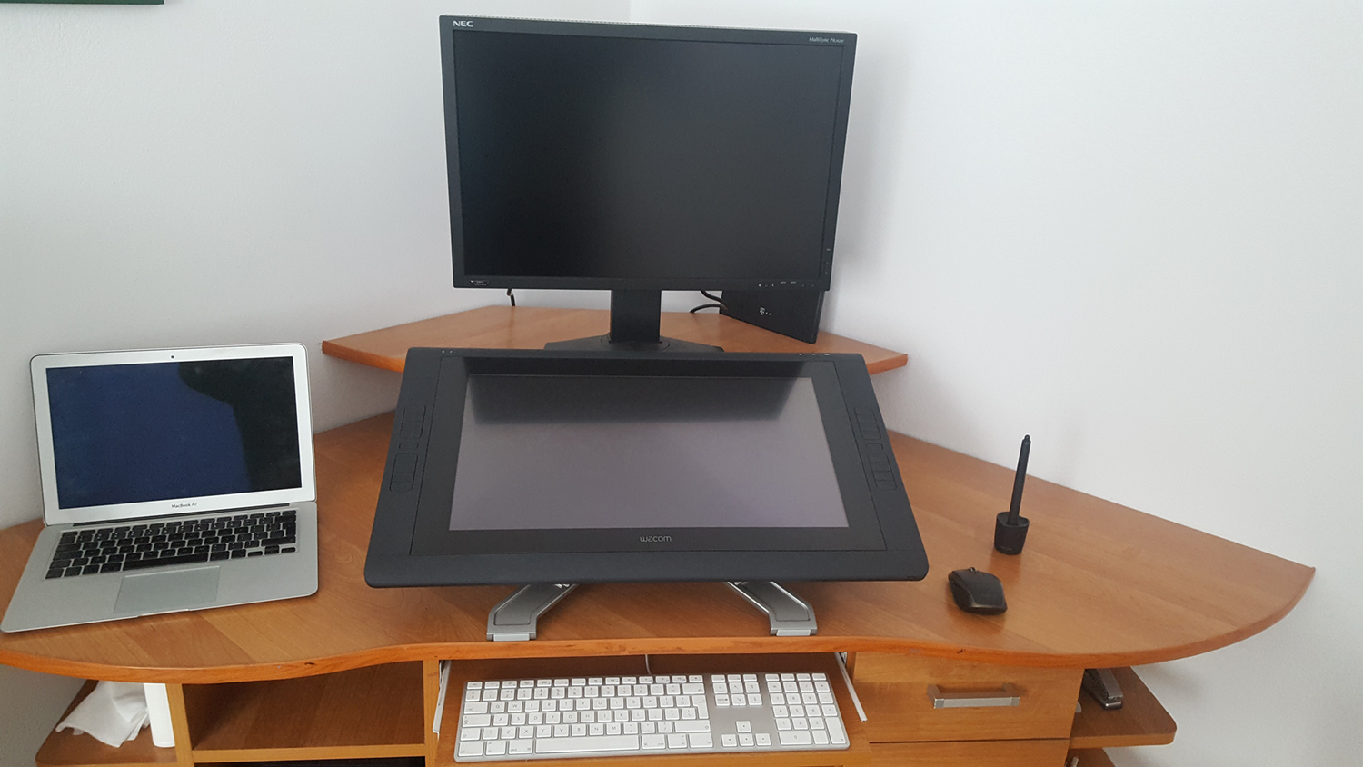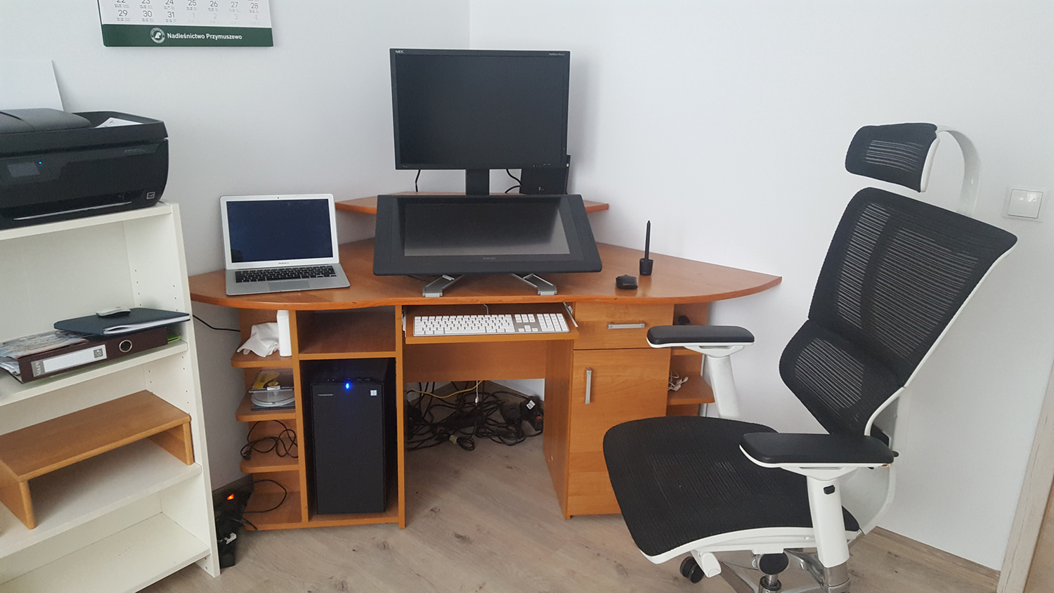 4 Układ, monitor - tablet - klawiatura. Tutaj jeszcze się zastanawiam, obecny układ jest nieco uciązliwy, do tabletu sie trzeba sporo wychylic, chyba ze klawiature wezmę na bok.