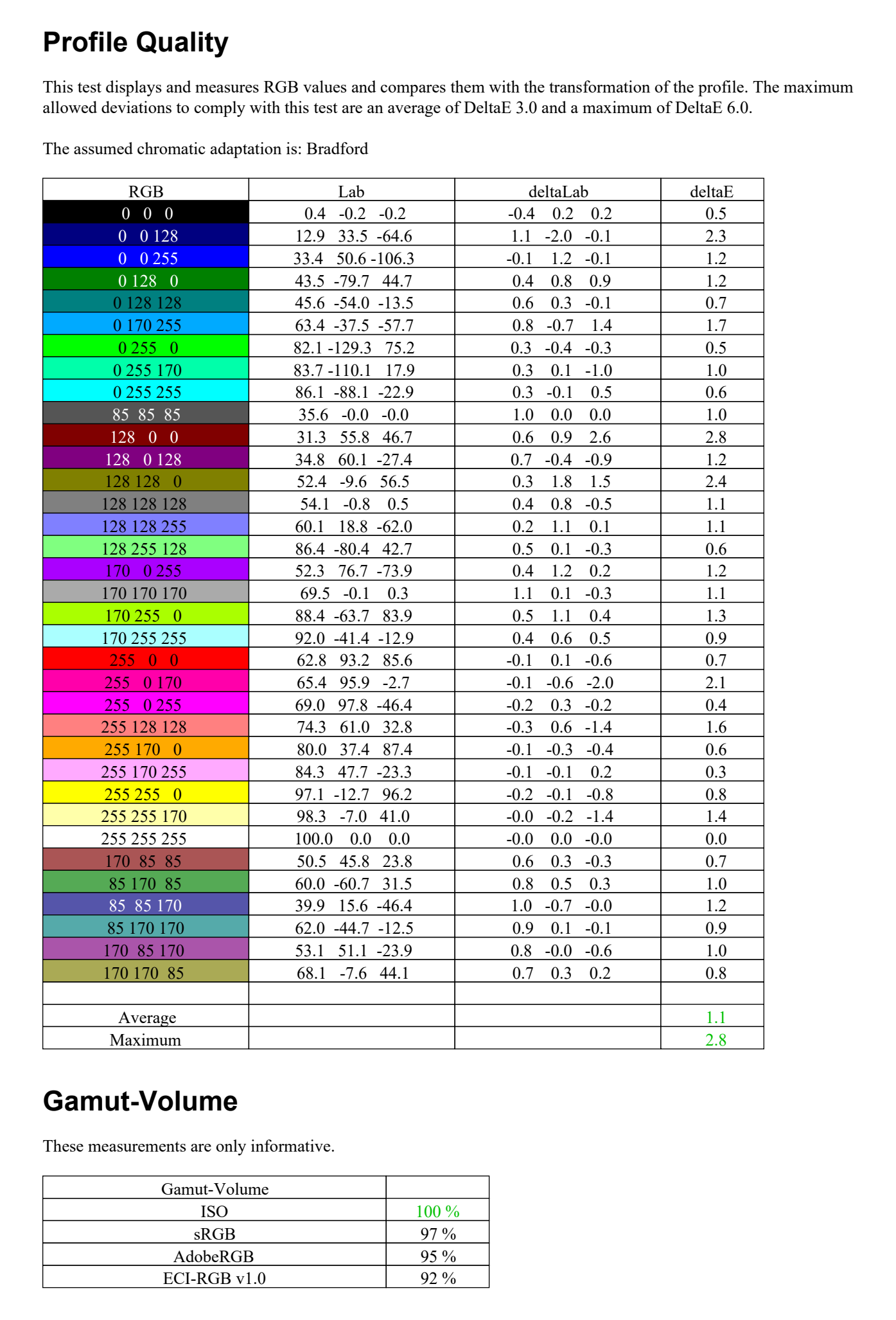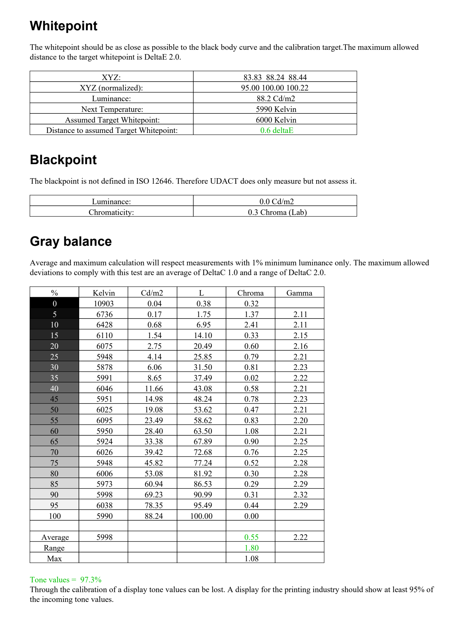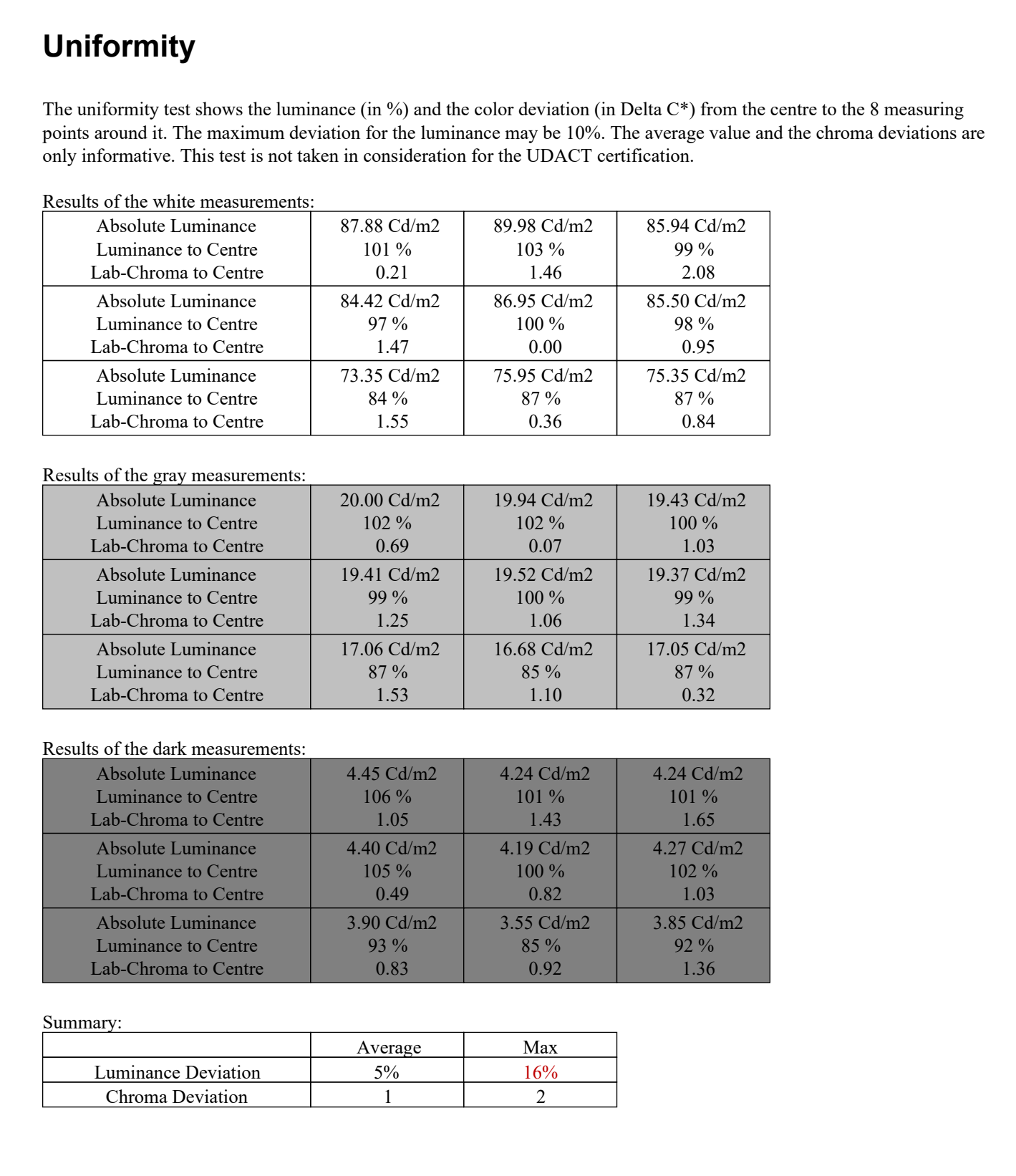Poniżej wyniki losowego egzemplarza. Zaznaczam, to jest monitor bez kalibracji sprzętowej i bez stabilizacji podświetlenia.