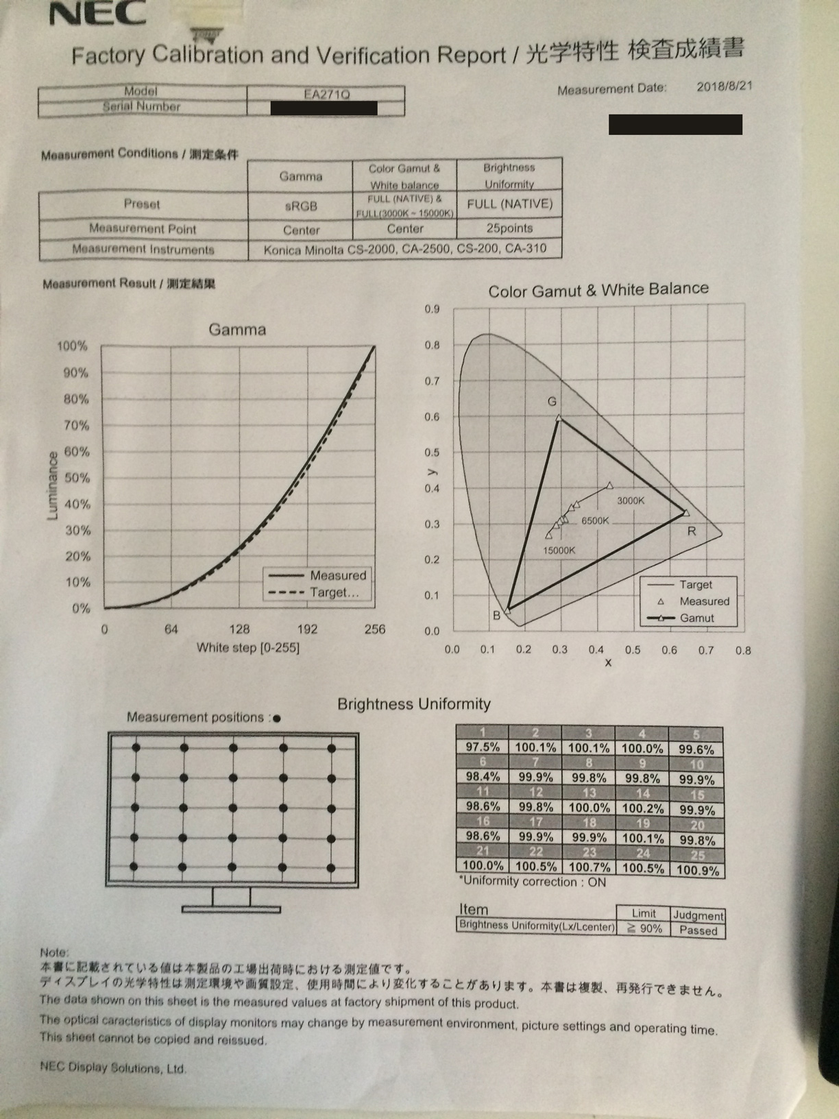 Taki "Factory Calibration Raport" miał też DELL za 2500 PLN, którego użytkowałem kilka dni bo tyle z nim wytrzymałem. Świecił nieziemsko niebiesko (wizualnie bliżej mu było do 7500K niż 6500K) i miał biel o każdym kolorze tęczy.