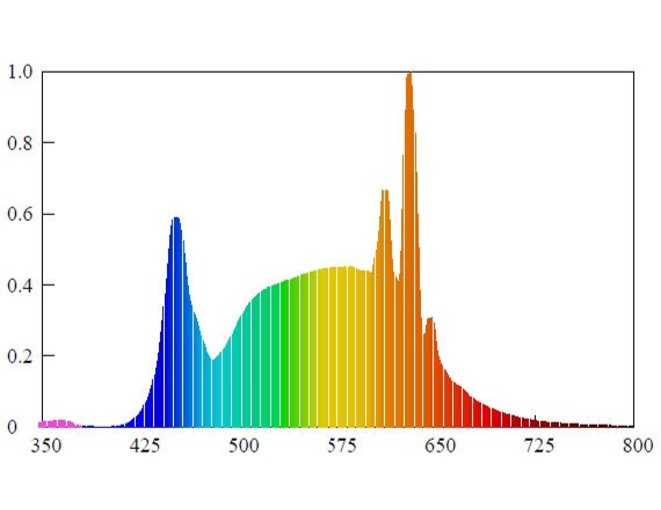 Nie podobają mi się te "wystrzały" w zakresie pomarańczy-czerwieni (ciepłych kolorów). Później niektóre kolory mogą być dziwnie mocno nasycone. Lepsze jest widmo bardziej równomierne, typu: