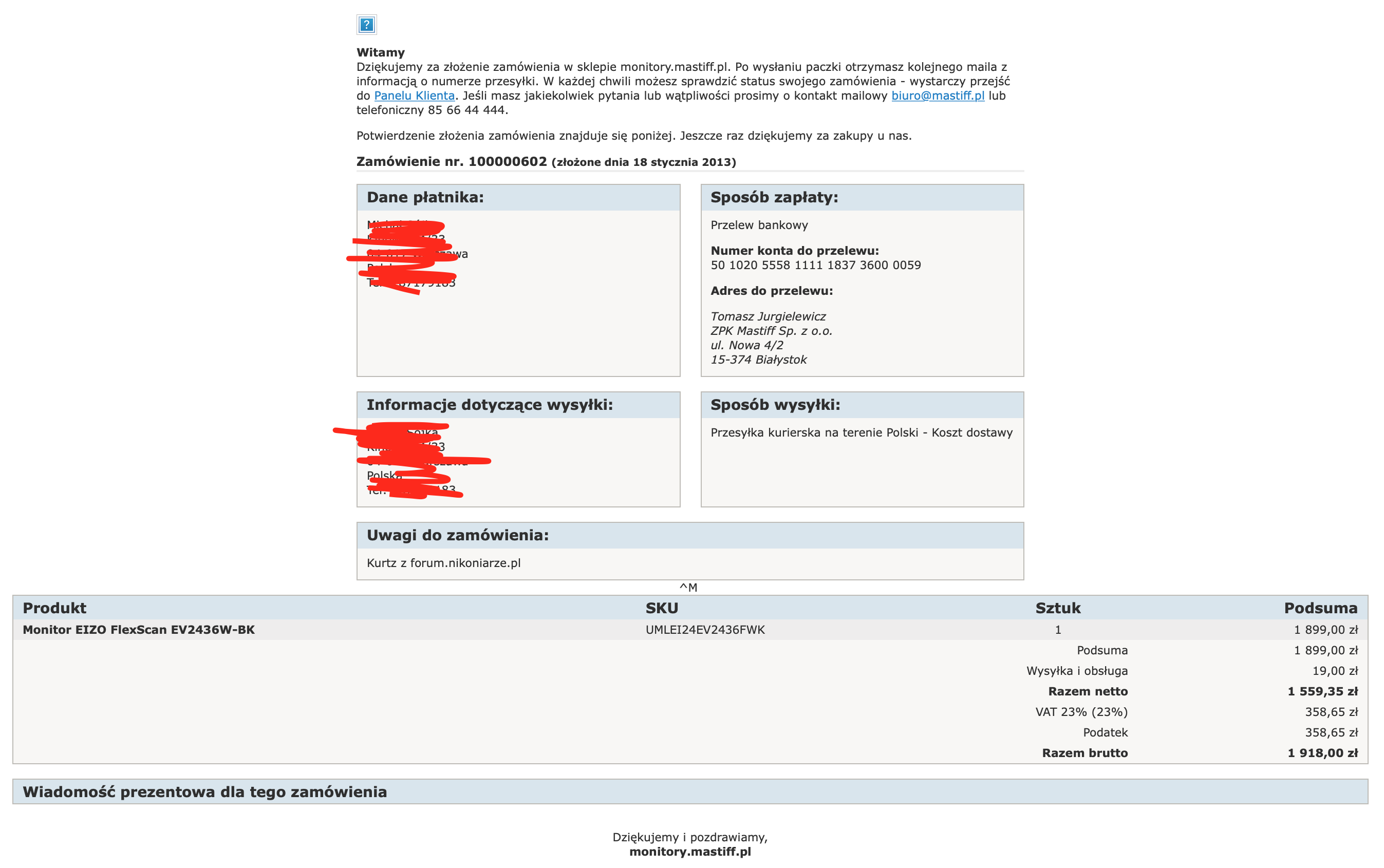 EV2451 jest skonstruowany z myślą o układach wielomonitorowych o więcej niż jedno "piętro". A'propos tanienia, wiem, ciągle powtarza Pan ten mit, nie pokazując ani jednego dowodu. A ja na to dowody mam. Przykładowo, weźmy poprzednika EV2436W. Pierwszy sprzedałem w 2012 roku za 1 918 zł (uwzględniając wyższą cenę za nowość) a jeden z ostatnich w 2016 roku za 1 815 zł. Tak jest zawsze i od lat. A niektóre modele wręcz drożeją, jeśli okazuje się, że następca jest rozczarowujący. Takich raportów jak poniżej, mogę pokazać setki. Nigdy żaden monitor na koniec sprzedaży drastycznie nie taniał. Nie spotkałem się z takim przypadkiem.