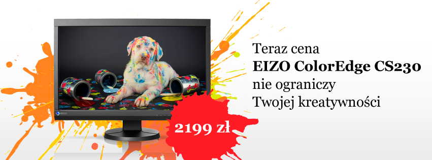 Firma EIZO od października rozpoczyna dwumiesięczną promocję cenową na monitor ColorEdge CS230. Cena po obniżce wynosi 2199 zł brutto. Monitor na promocyjnych warunkach jest dostępny u wybranych partnerów.
