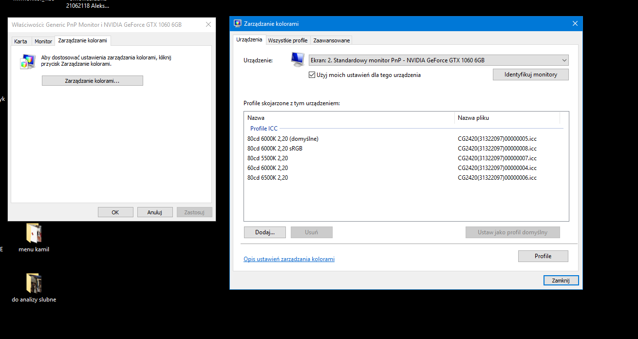 Usuwałem monitor, dawałem mu jeszcze raz wykryć wszystkie urządzanie związane z wyświetlaniem od nowa i od nowa zainstalować sterowniki. Nic to nie dało. Tak, używam dwóch monitorów. Jeden z szerokim gamutem, drugi bez, co przy windowsie jest dosyć uciążliwe.