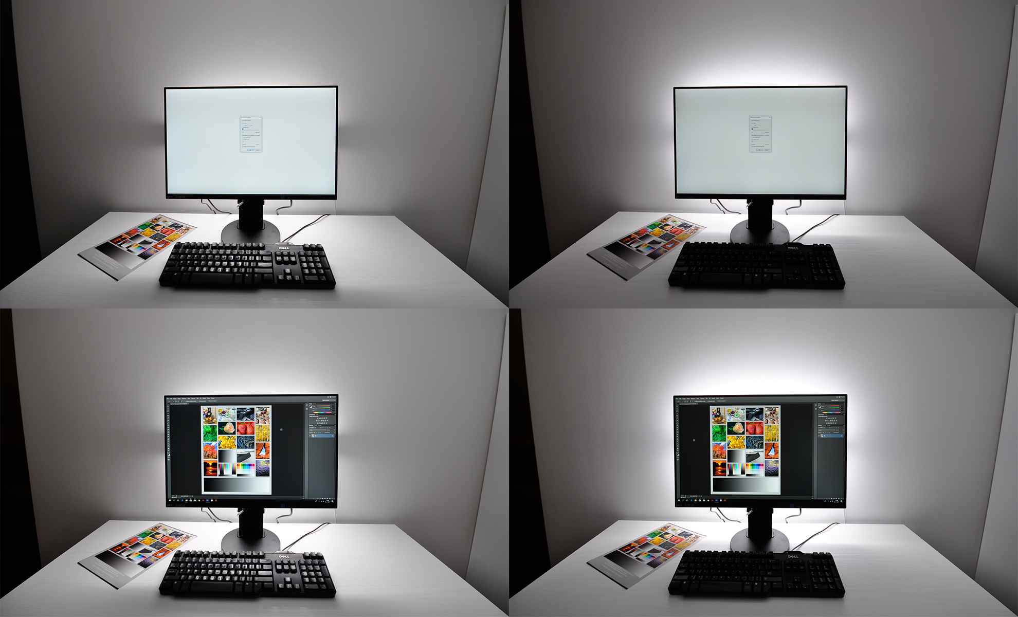 Powtarzam do znudzenia - videoled ok. 5500K na ścianę za monitor i koniec tematu.